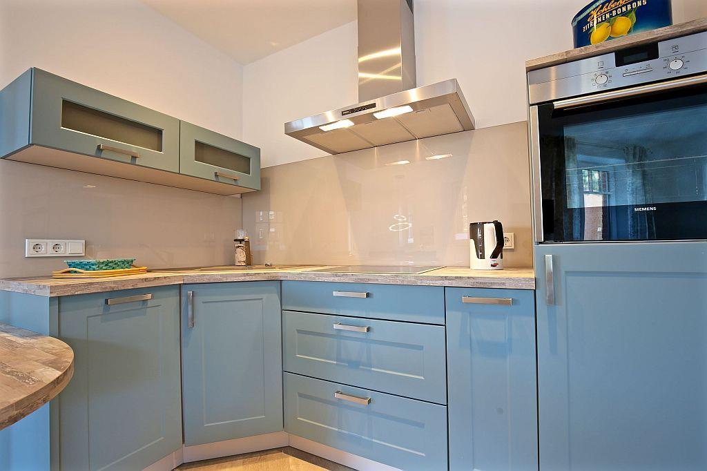 In der in den Wohnbereich integrierten und komplett ausgestatteten Küche haben Sie die Möglichkeit, sich nach Herzenslust zu versorgen. Sie ist mit Geschirrspüler, Glaskeramik-Kochfeld, Backofen, Kaffeemaschine und vielem mehr ausgestattet.