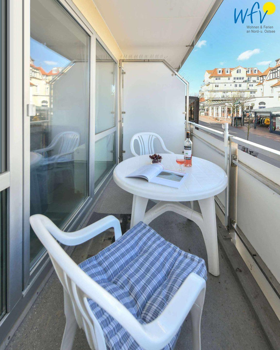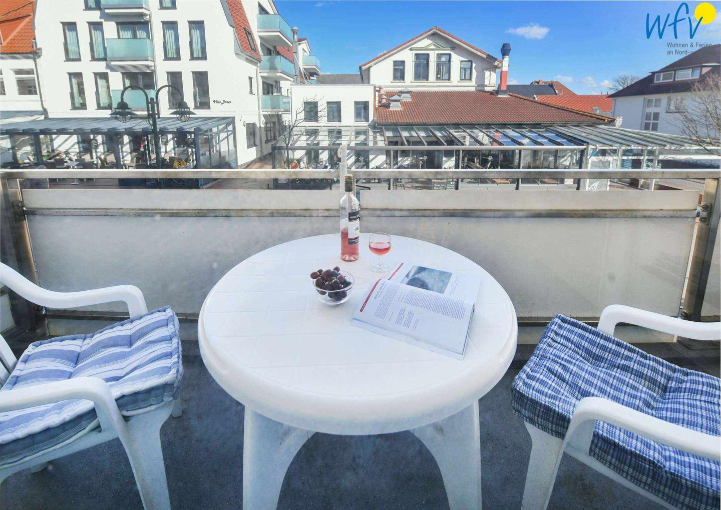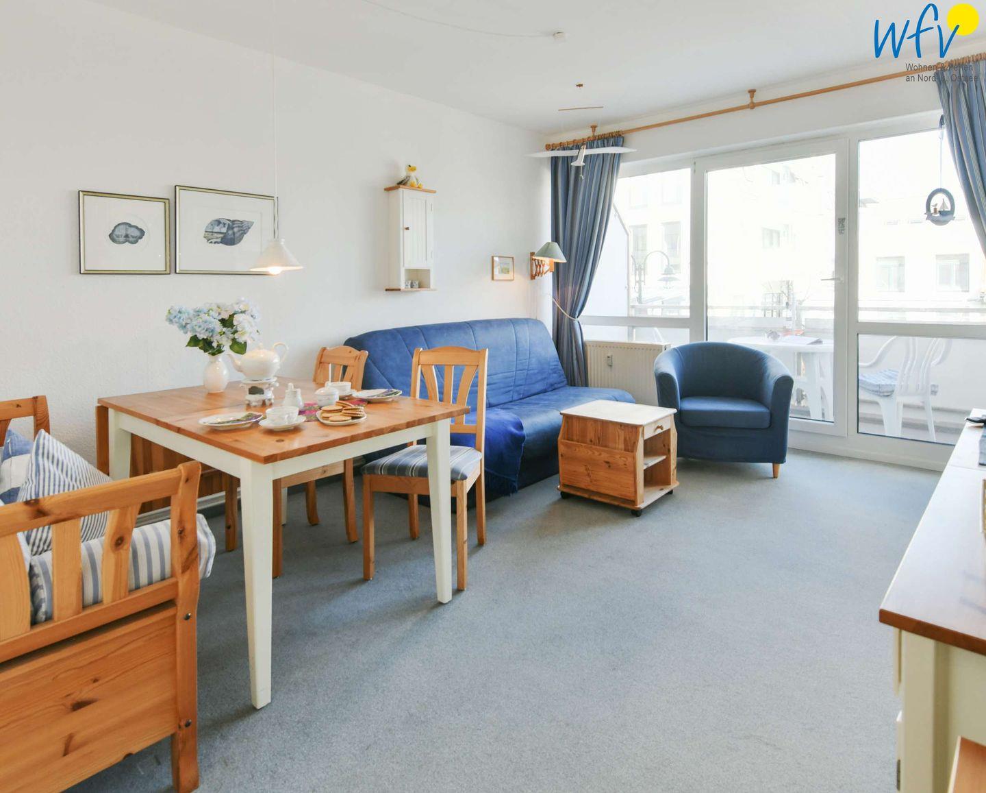Gemütliche Ferienwohnung auf Wangerooge mit Balkon, maritimer Einrichtung und Strandnähe für einen erholsamen Urlaub.