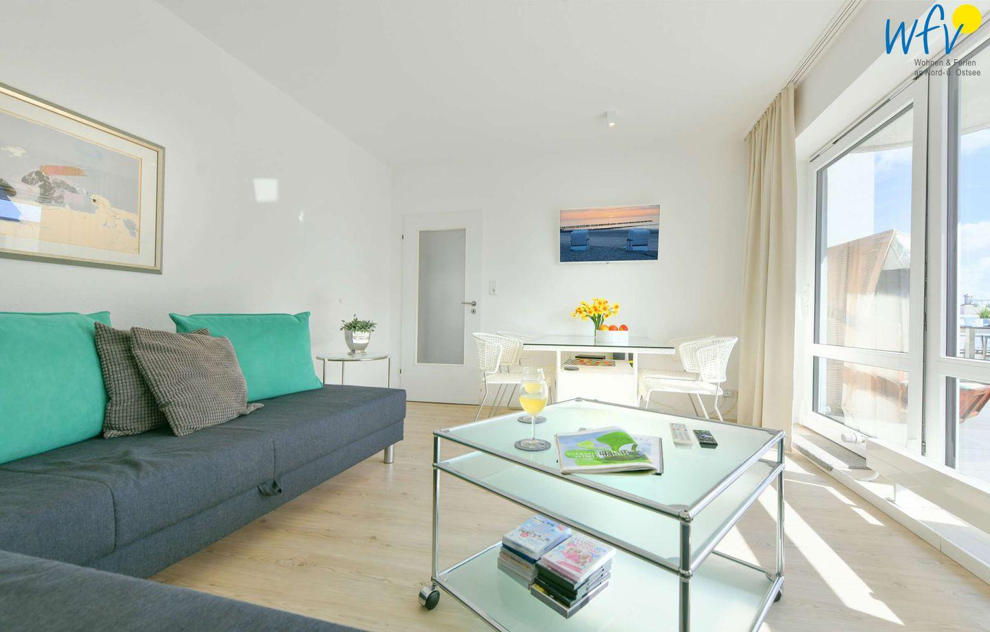 Gemütliche Ferienwohnung auf Wangerooge mit großer Dachterrasse und moderner Ausstattung für entspannte Urlaubstage.