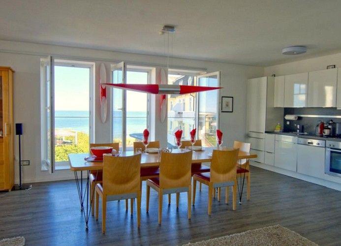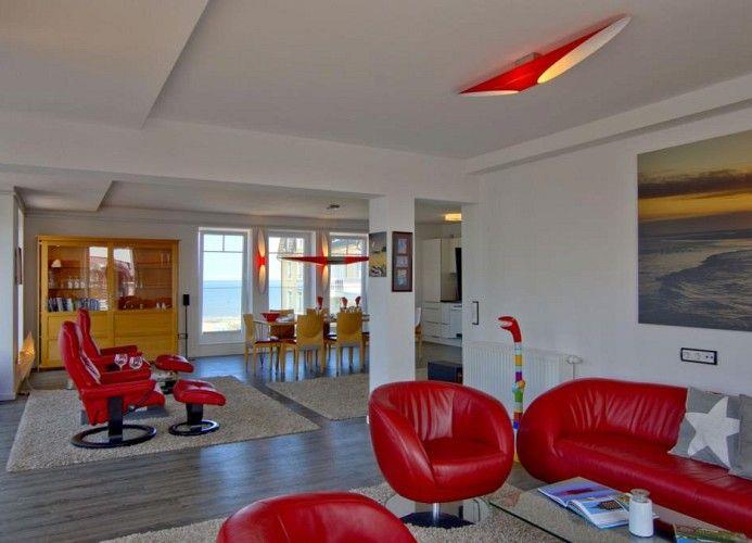 112 m² große Pracht-Ferienwohnung in unmittelbarer Strandnähe gelegen, mit direktem Meerblick und Südbalkon. Direkter Meerblick im Norden, im Westen Blick auf den Platz vor dem Cafe Pudding und im Süden auf die Zedeliusstraße und das Wattenmeer. Ein 67 m² großes Wohn- und Esszimmer, zwei nach Süden ausgerichtete Schlafzimmer, zwei großzügige Badezimmer und insgesamt vier ultraflache Samsung Fernseher. Diese Ferienwohnung ist eine Nichtraucherwohnung; Haustiere sind nicht erlaubt.