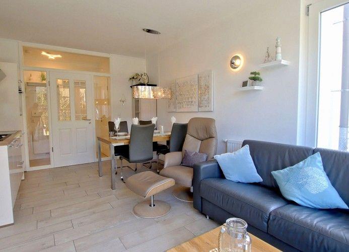 Ein im Jahr 2017 in besonderer Architektur neu erbautes Domizil im ruhigen Dorfkern, in Sackgassenlage, abseits des Trubels. Den feinsandigen Badestrand und das Zentrum von Wangerooge erreichen Sie nach wenigen Gehminuten. Wir bieten Ihnen die sehr hochwertig ausgestattete Ferienwohnung "Strandperle" an, die sich im Erdgeschoss befindet und über eine großzügige Sonnenterrasse mit Essgelegenheit und Lounge Ecke verfügt, umgeben vom großzügigen Garten. Zwei separate Schlafzimmer, eines mit Doppelbett, eines mit zwei Einzelbetten, bieten hohen Schlafkomfort für bis zu vier Erwachsene und ein Kleinkind. Die im modernen, maritimen Wohnstil absolut neu und gemütlich eingerichtete "Strandperle" lässt nahezu keine Wünsche offen und wird auch Ihren Geschmack treffen. Bodentiefe Fenster lassen den Wohn- und Schlafraum mit Sonnenlicht durchfluten. Hochwertige, allergikerfreundliche Materialien (Parkett- und Fliesenböden), sowie eine umfassende Ausstattung, bieten ideale Voraussetzungen, um zu jeder Jahreszeit erholsame Tage auf Wangerooge zu verbringen. Sommertags, bei einem entspannenden Grillabend auf der Terrasse mit Relax-Lounge Ecke, wintertags, bei einem Spieleabend in gemütlicher Atmosphäre im durch bequemer Ledercouch und Relaxsessel und abwechslungsreicher Lichteinrichtung-ansprechenden Wohnzimmer.