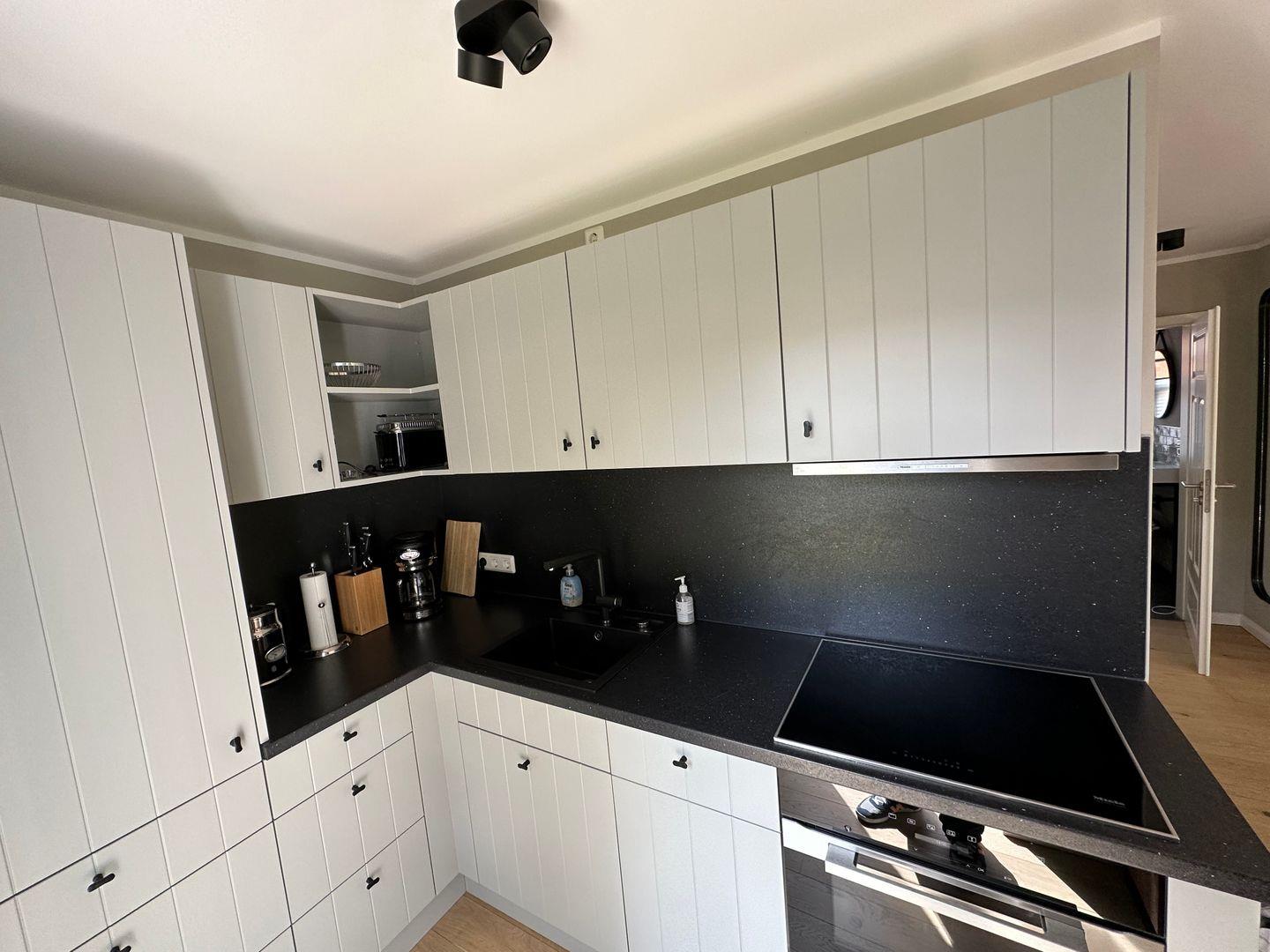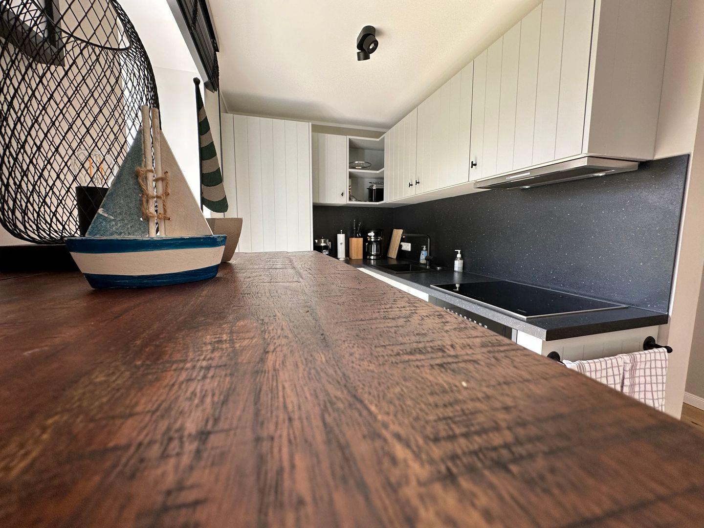 Die moderne Landhausküche ist aus Tischlerhand und mit Miele E-Geräten auf dem neusten Stand der Technik.
