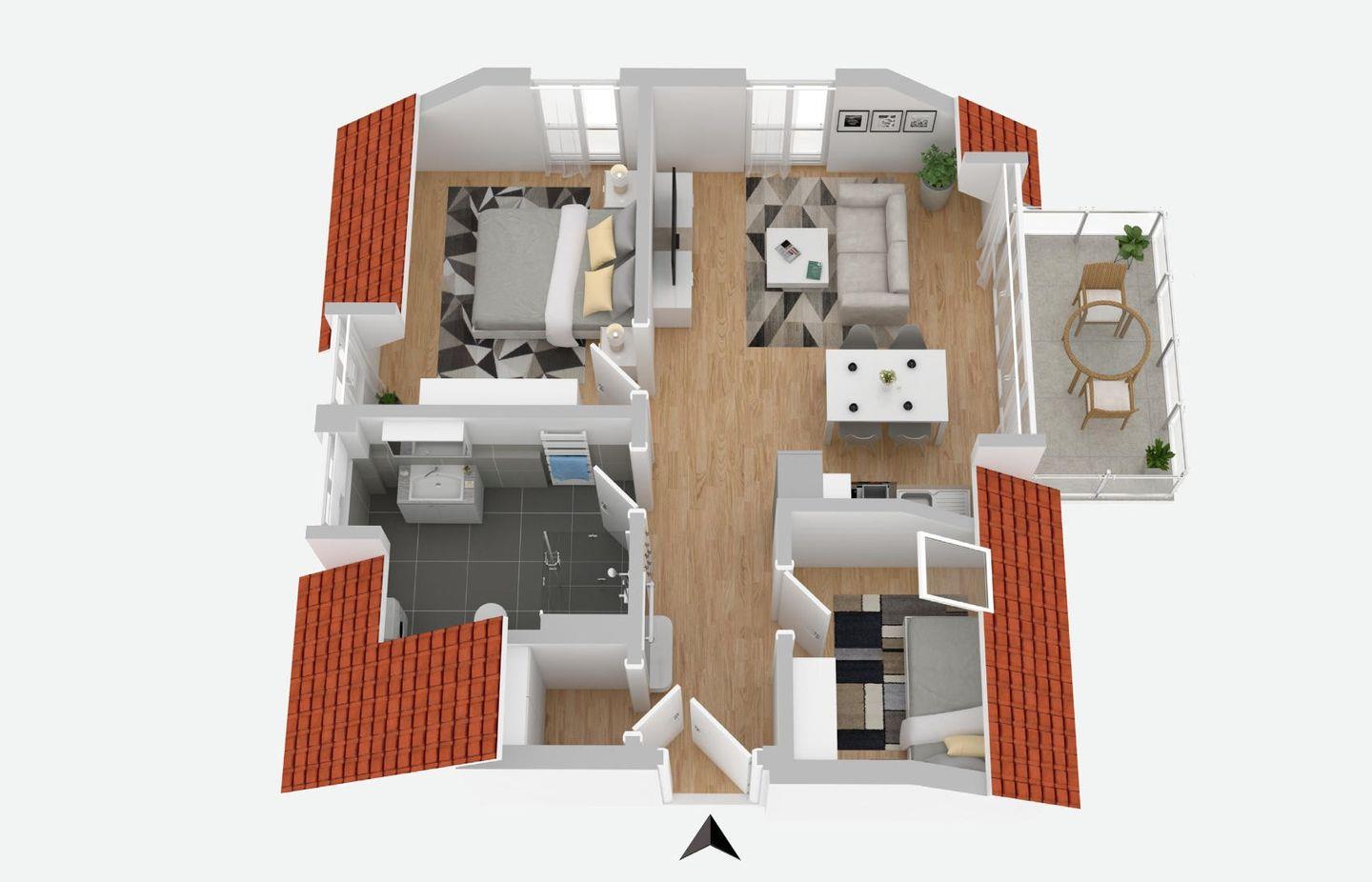 für bis zu 4 Personen auf 57 m2 Wohnfläche. Außerdem gibt es einen Balkon, der mit Balkonmöbel ausgestattet ist.
