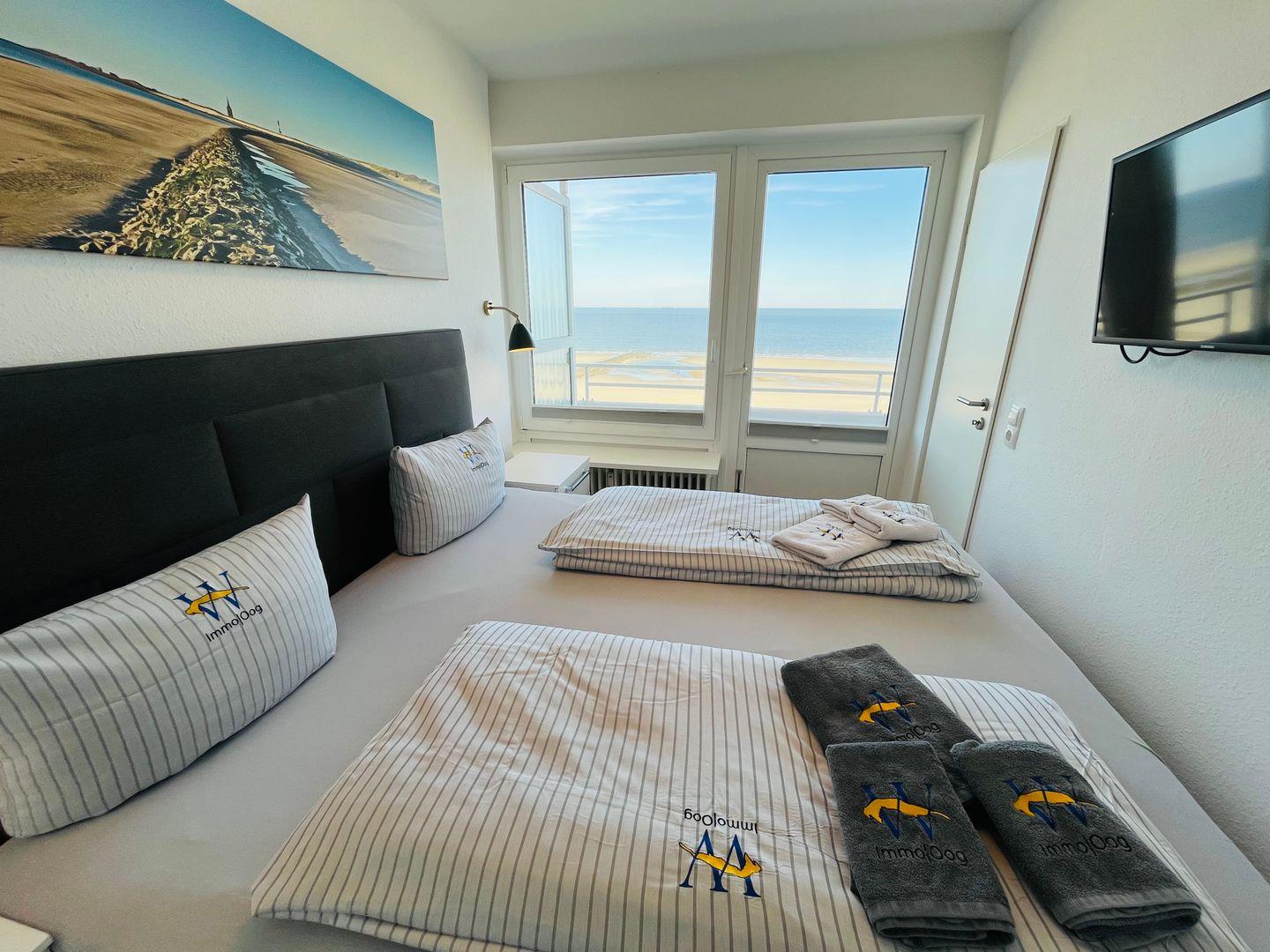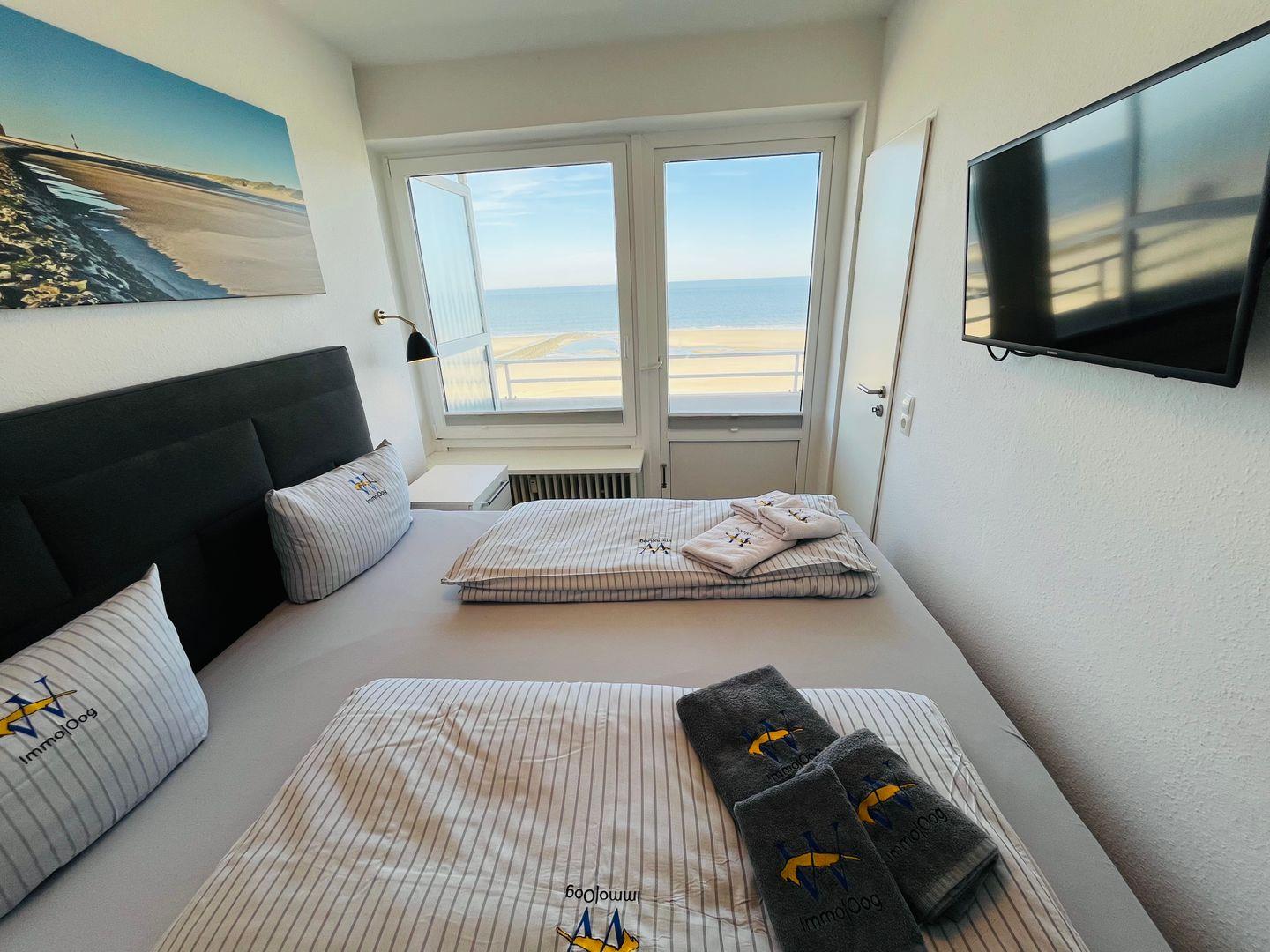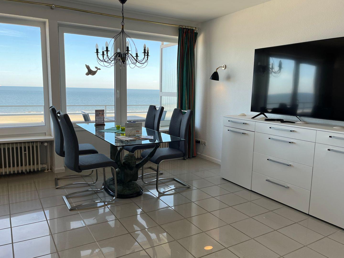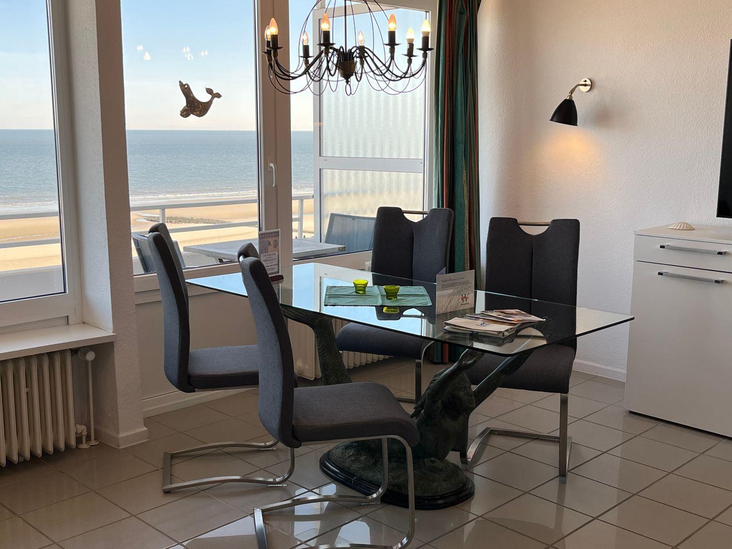 Ferienwohnung Lange Anna auf Wangerooge bietet traumhaften Meerblick direkt am Strand mit großem Balkon und lichtdurchfluteten Räumen.