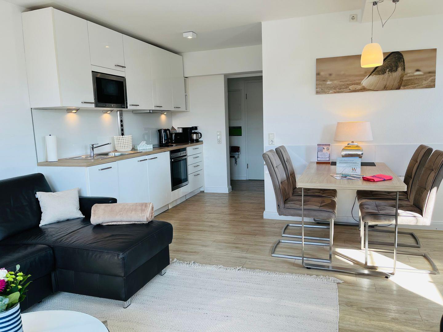 Die 48 m² große Ferienwohnung "WoogeStrand" in der 2013 erbauten Residenz Anna See liegt nur 50 m vom Wangerooger Hauptstrand entfernt direkt beim Cafe