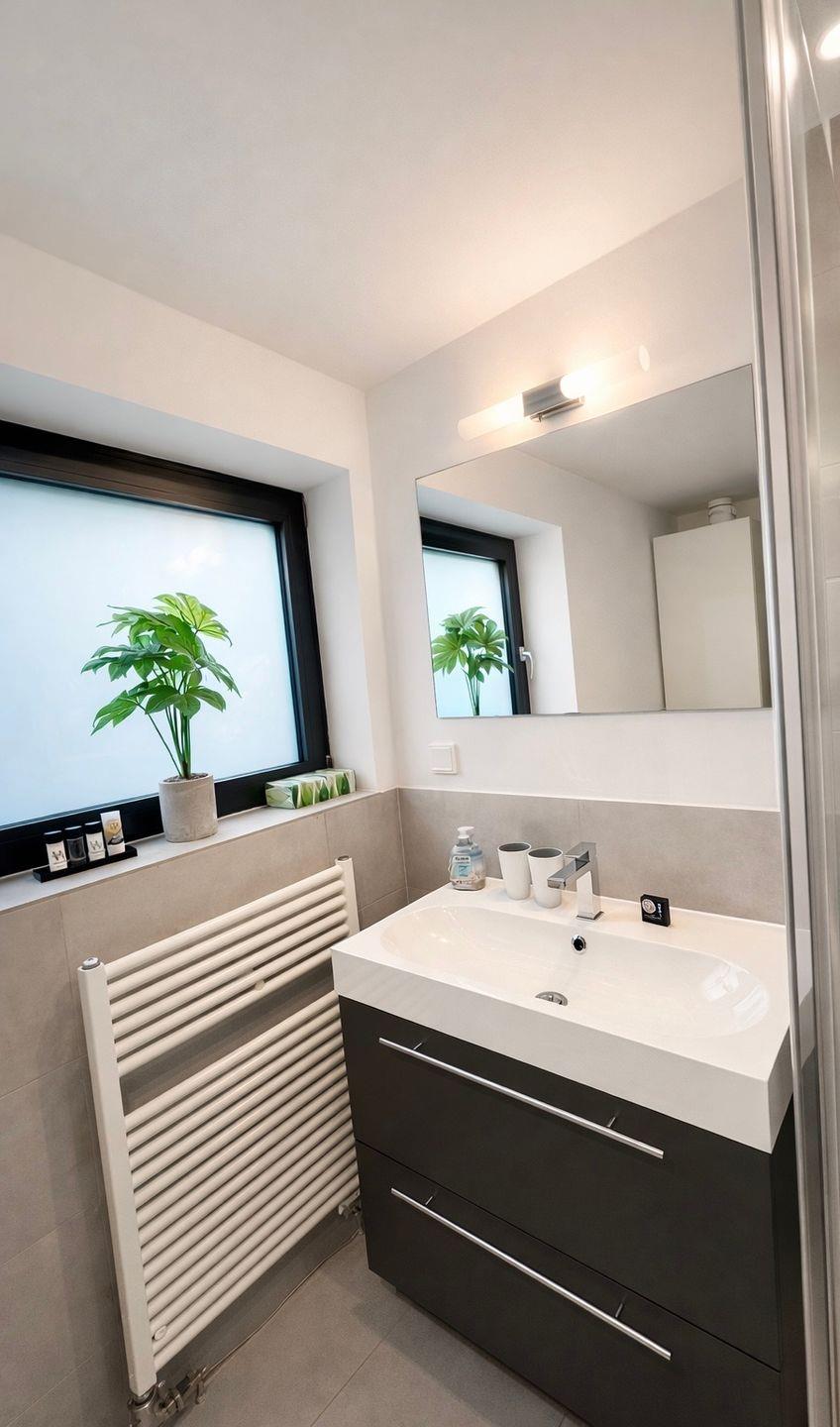 neues Bad mit Fenster. Selbstverständlich kann man Wellenkrönchen auch gern