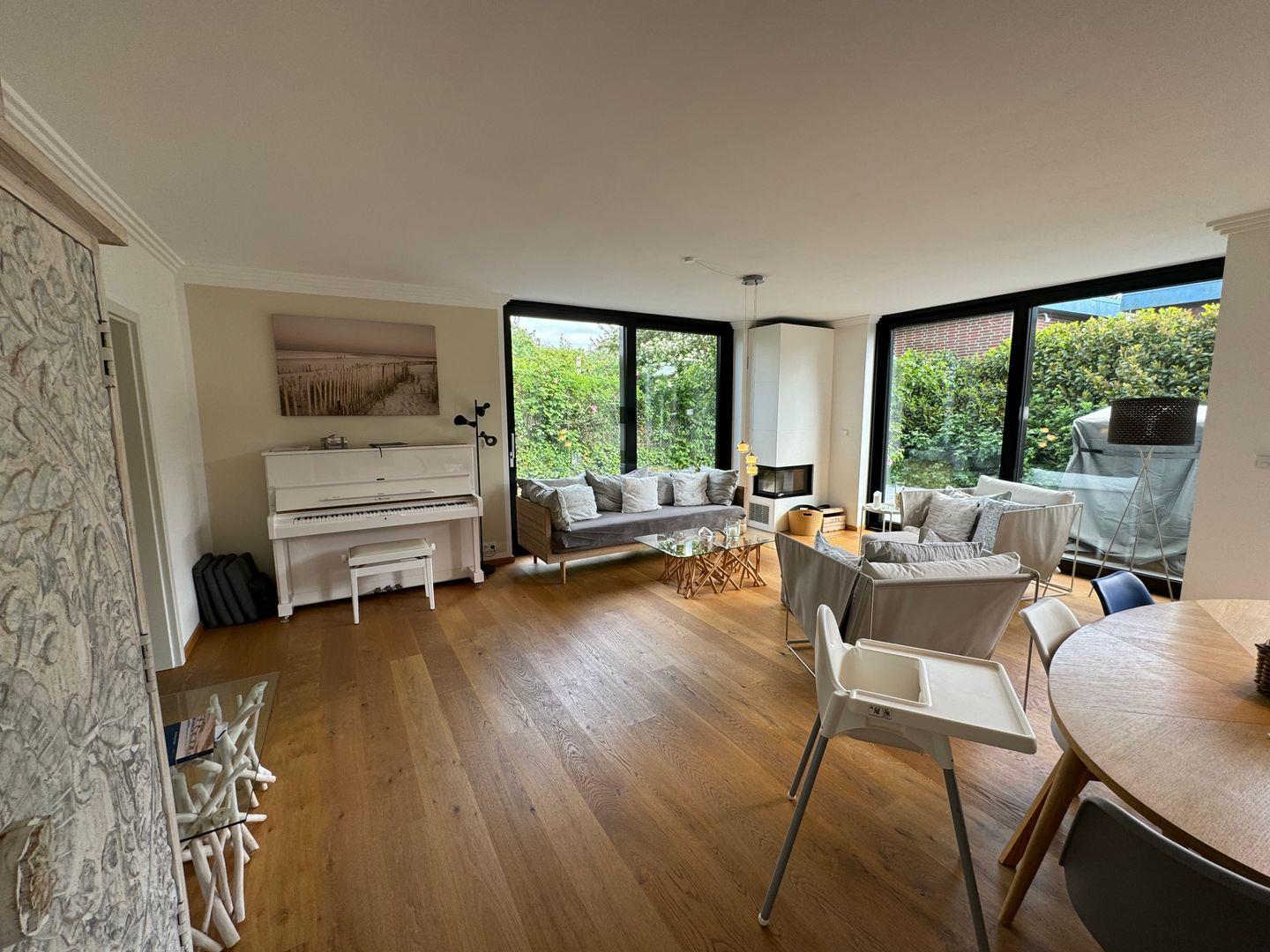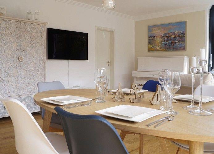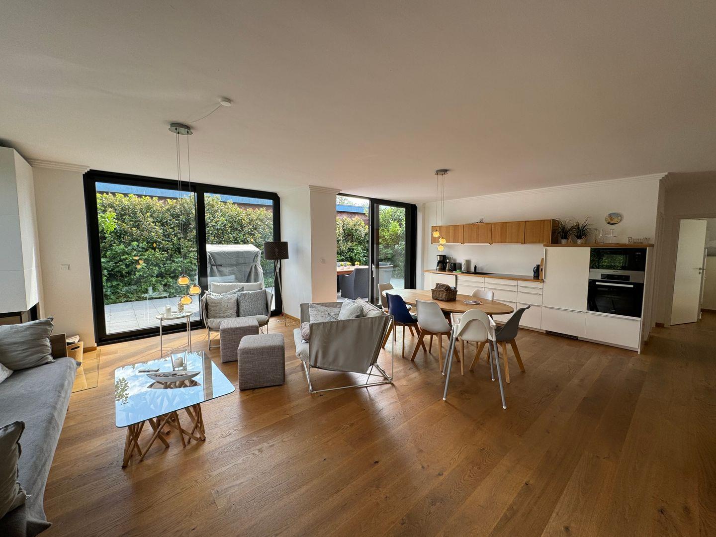 Die Wohnung ist großzügig und komfortabel gestaltet, moderne Elemente und Klassiker treffen auf Komfort und Behaglichkeit. Bei schönem Wetter auf die geräumigen Terrasse in bequemen Korbsesseln. Bei schlechtem Wetter ein Kaminfeuer mit gemütlichen Sesseln und Sofa. Schauen Sie den prasselnden Flammen zu, stöbern Sie in unserem Bücherschrank oder aber spielen Sie auf dem Klavier all die Stücke, für die man sonst zu wenig Zeit findet. Nichtraucherwohnung - Haustiere nicht erlaubt.