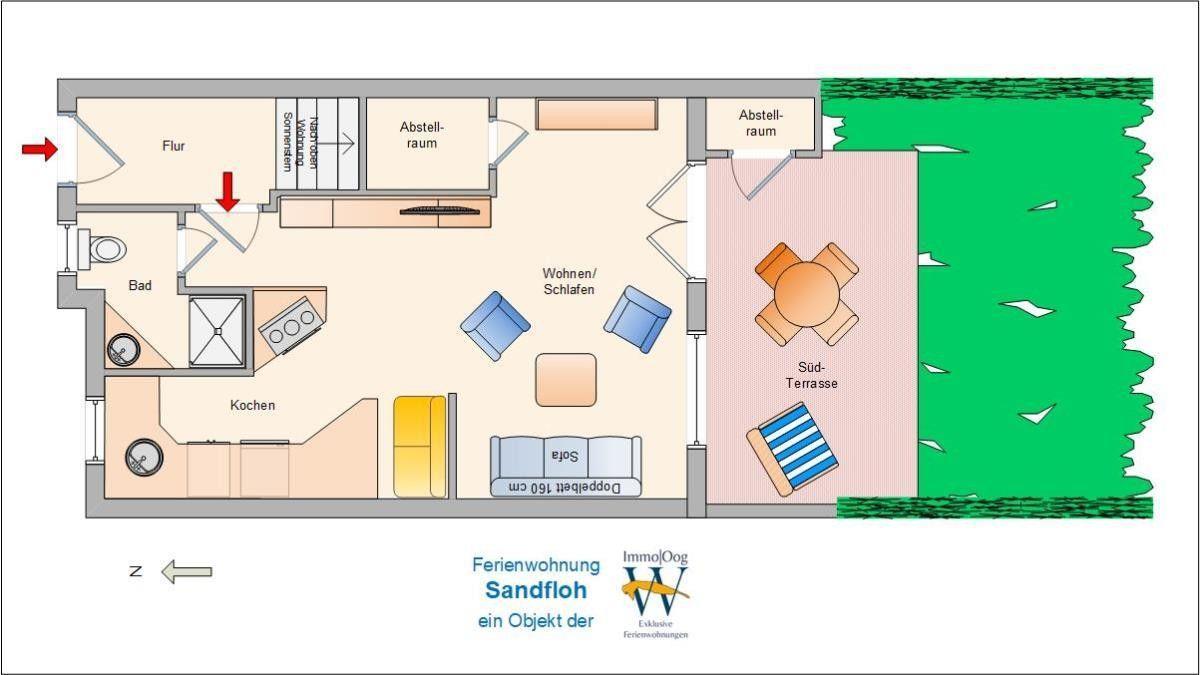 ruhiger sonniger Lage, die Ferienwohnung „Sandfloh“. Die ca. 40 m² große,