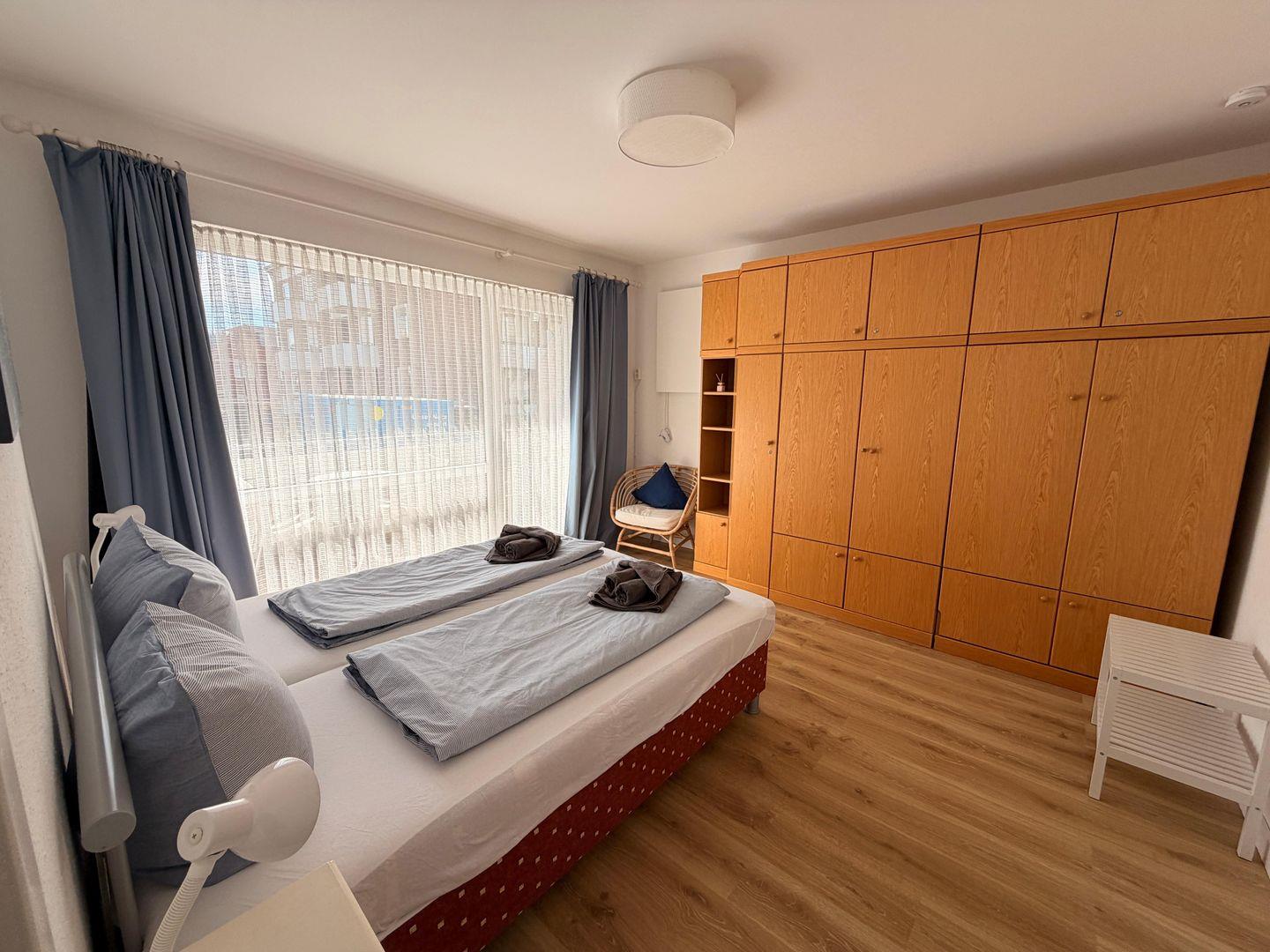 zusätzlichen Schrankbett kann es auch als Dreibettzimmer genutzt werden. Das