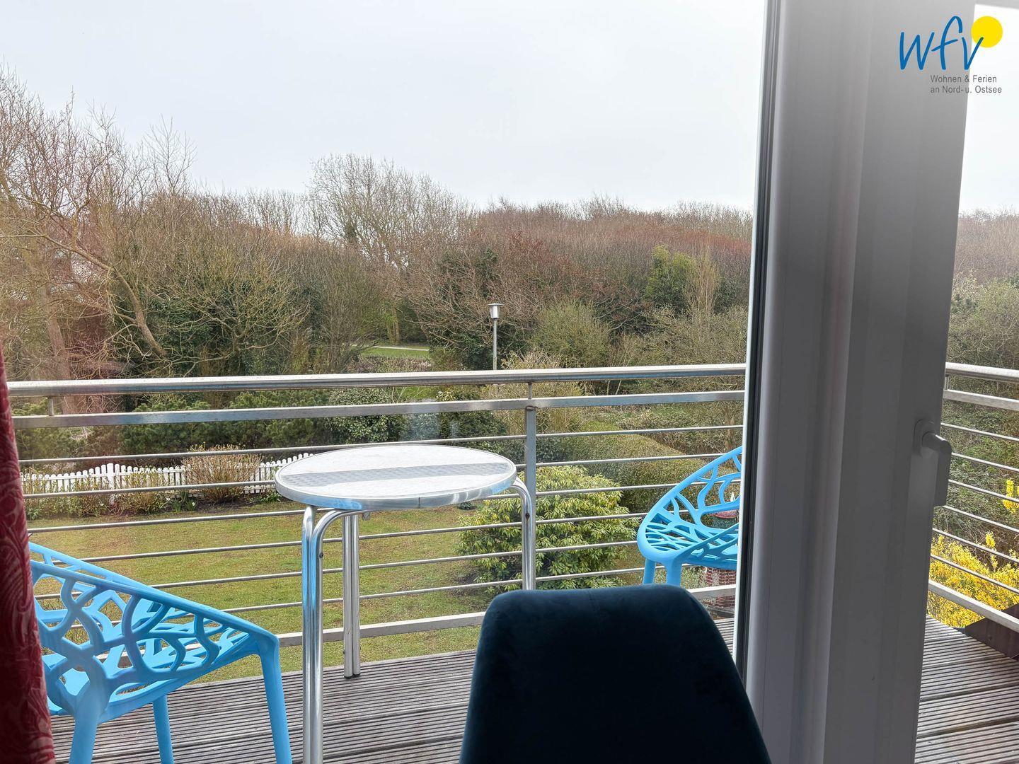 Oder Sie lassen den Abend beim Sonnenuntergang auf dem hübsch möblierten Süd-West-Balkon ausklingen - bei einem Urlaubscocktail mit schönem Blick in den großen Garten der "Villa Düna"! Tagsüber werden Sie hier mit Sonne und wohltuender Nordseeluft verwöhnt.