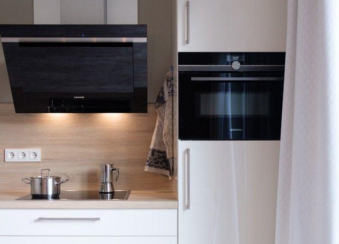 Für eine angenehme Selbstverpflegung ist die moderne Küchenzeile mit einer Backofen-/Mikrowellenkombination, Spülmaschine, Induktionsherd und hochwertigen Markengeräten sehr gut ausgestattet.