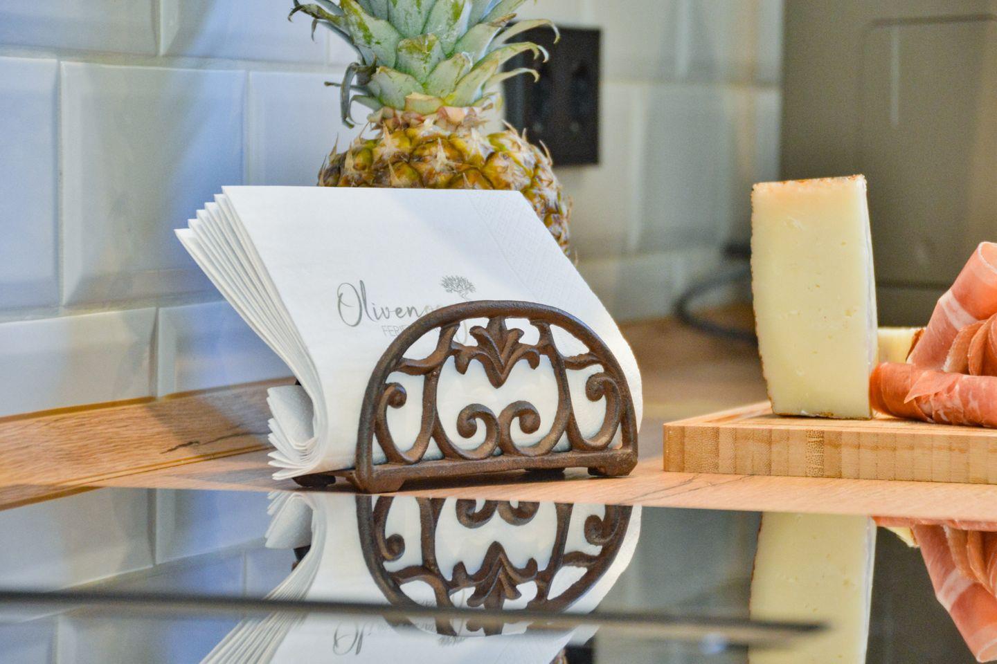 Zusätzlich statten wir das „Olivenoog“ mit ausreichend Spülmaschinentabs, Müllbeuteln, Spülmittel, Spülschwamm, Spüllappen sowie Küchentüchern, Toilettenpapier, Frischhaltefolie, Backpapier und Alufolie aus.