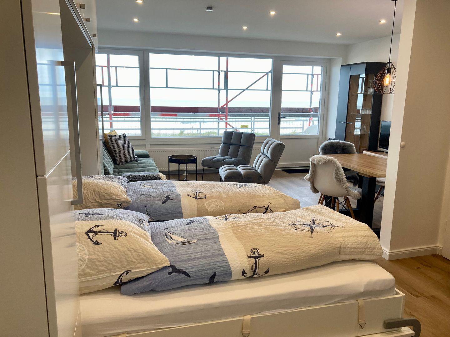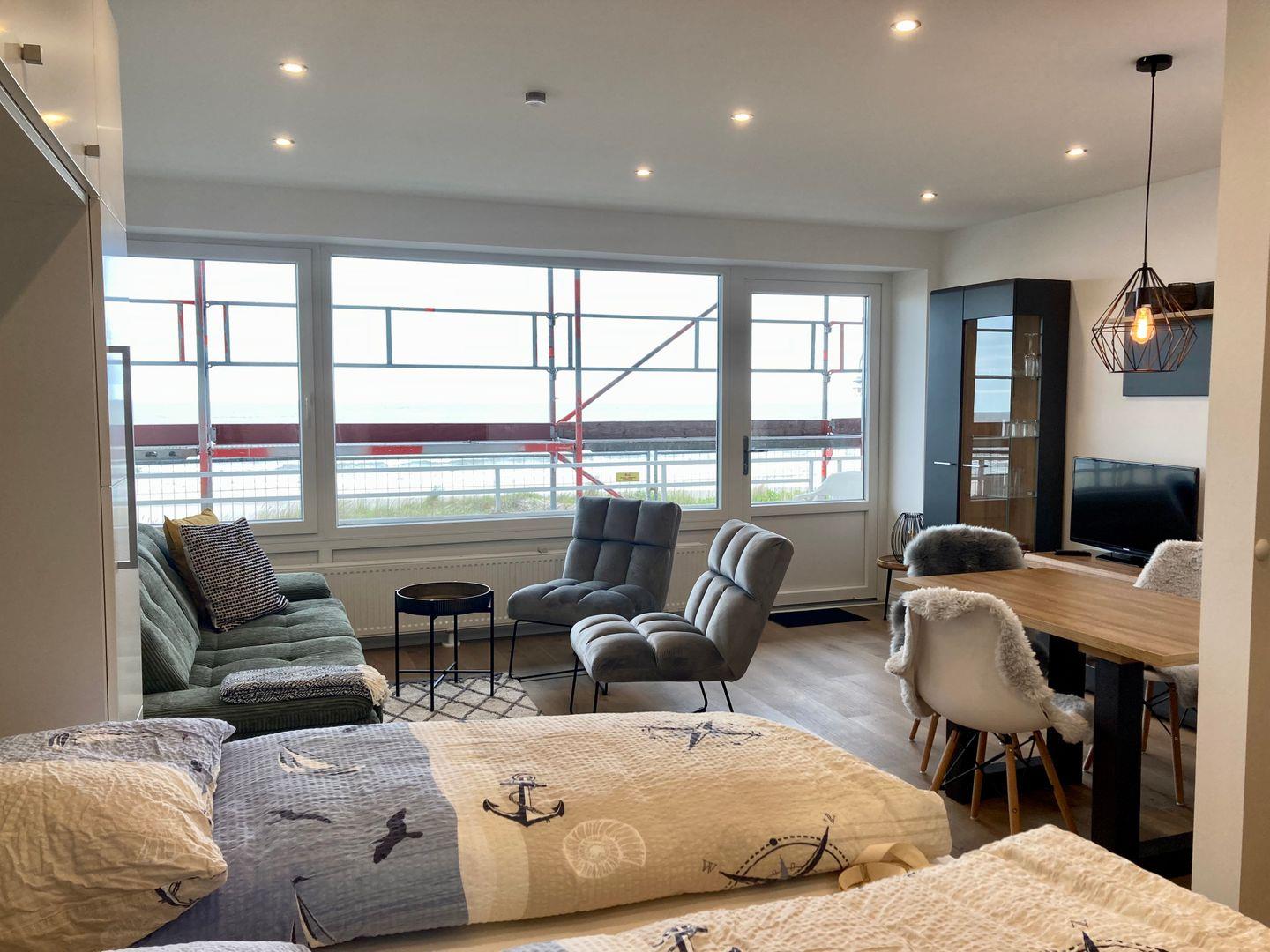 Diese neu renovierte Wohnung in erster Strandlage ist stylisch eingerichtet mit Wohlfühlfaktor. Aus jeder Ecke des Wohn-Essbereich kann man den Blick aufs Meer schweifen lassen. Die Wohnung verfügt über ein hochwertiges Schrankbett, ein Badezimmer mit Dusche und gemütlichem Wohn- Essbereich