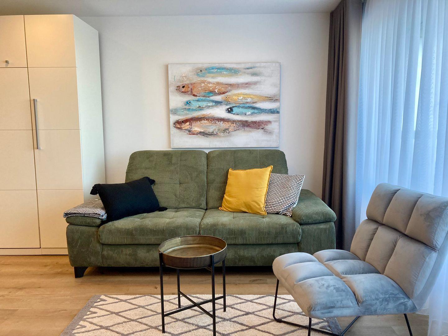 Dieses Einraumappartement befindet sich im Hochparterre des Haus Monopol in erster Strandlage. Aus jeder Ecke dieser Unterkunft kann man das Meer sehen und genießen