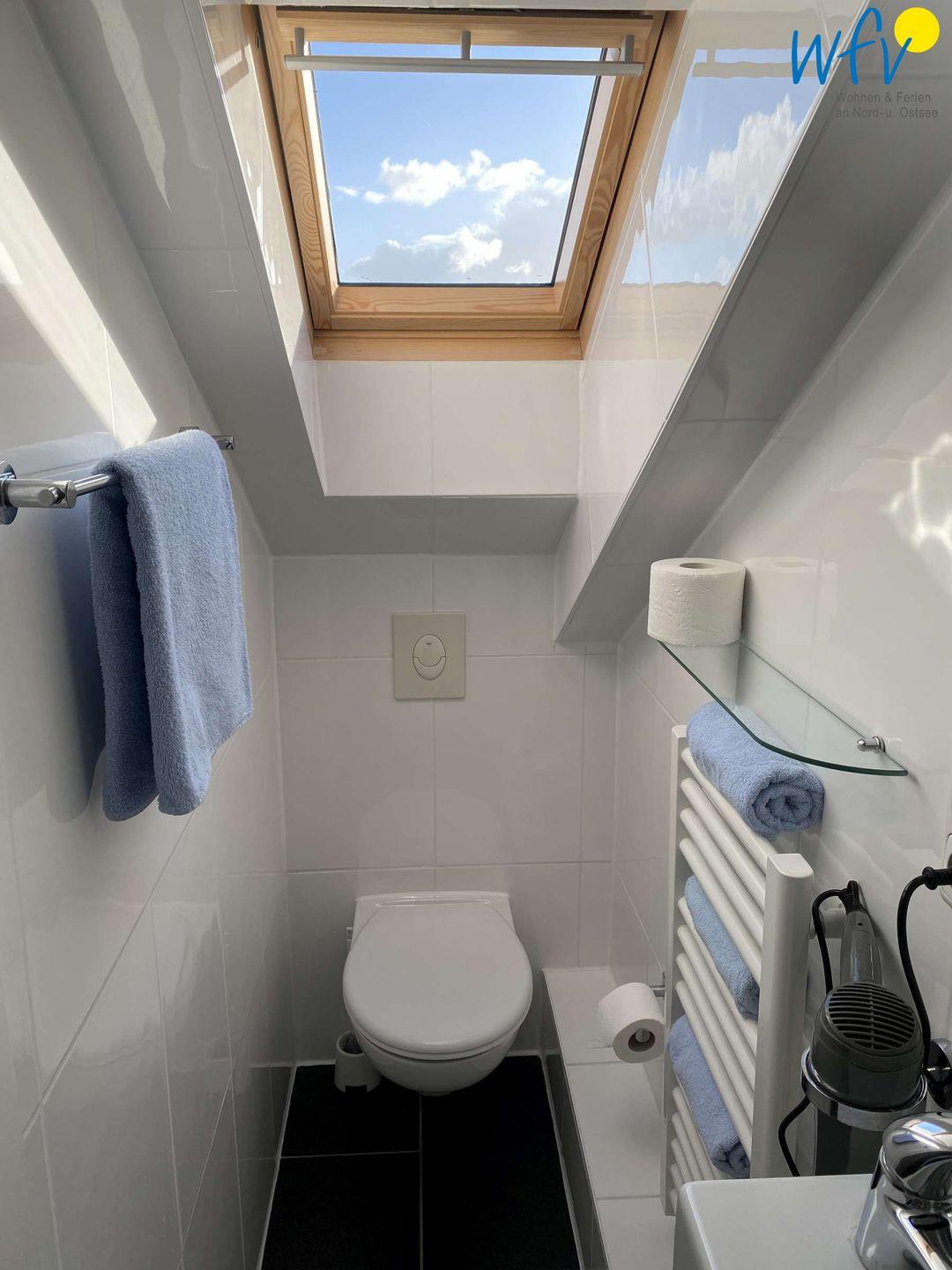 Zwei gepflegte moderne Duschbäder auf beiden Etagen sowie ein zusätzliches Gäste-WC im EG vervollständigen den Wohnkomfort des "Wangerooger Inselhäuschens".