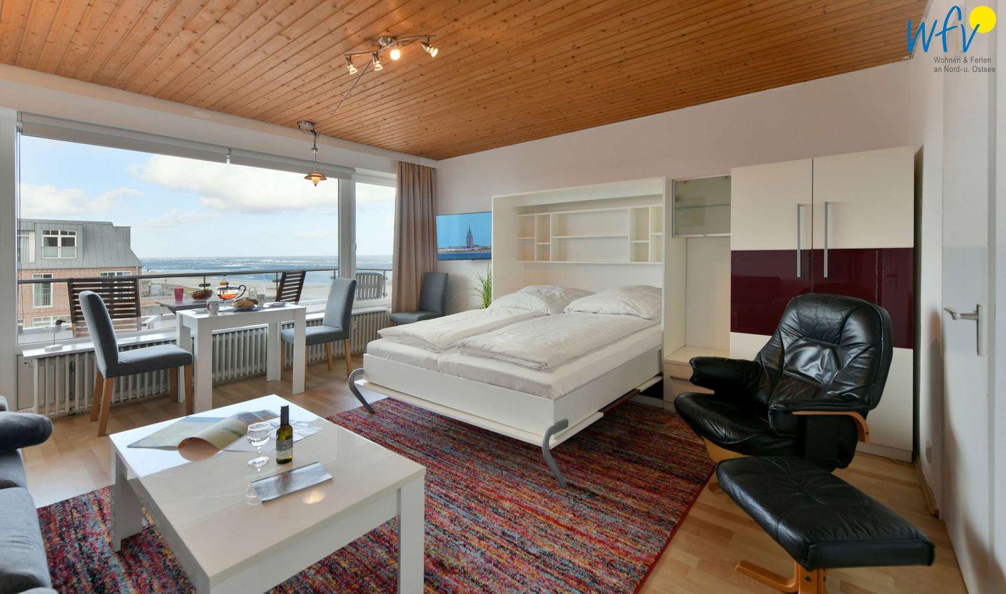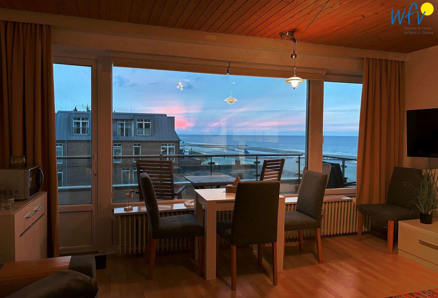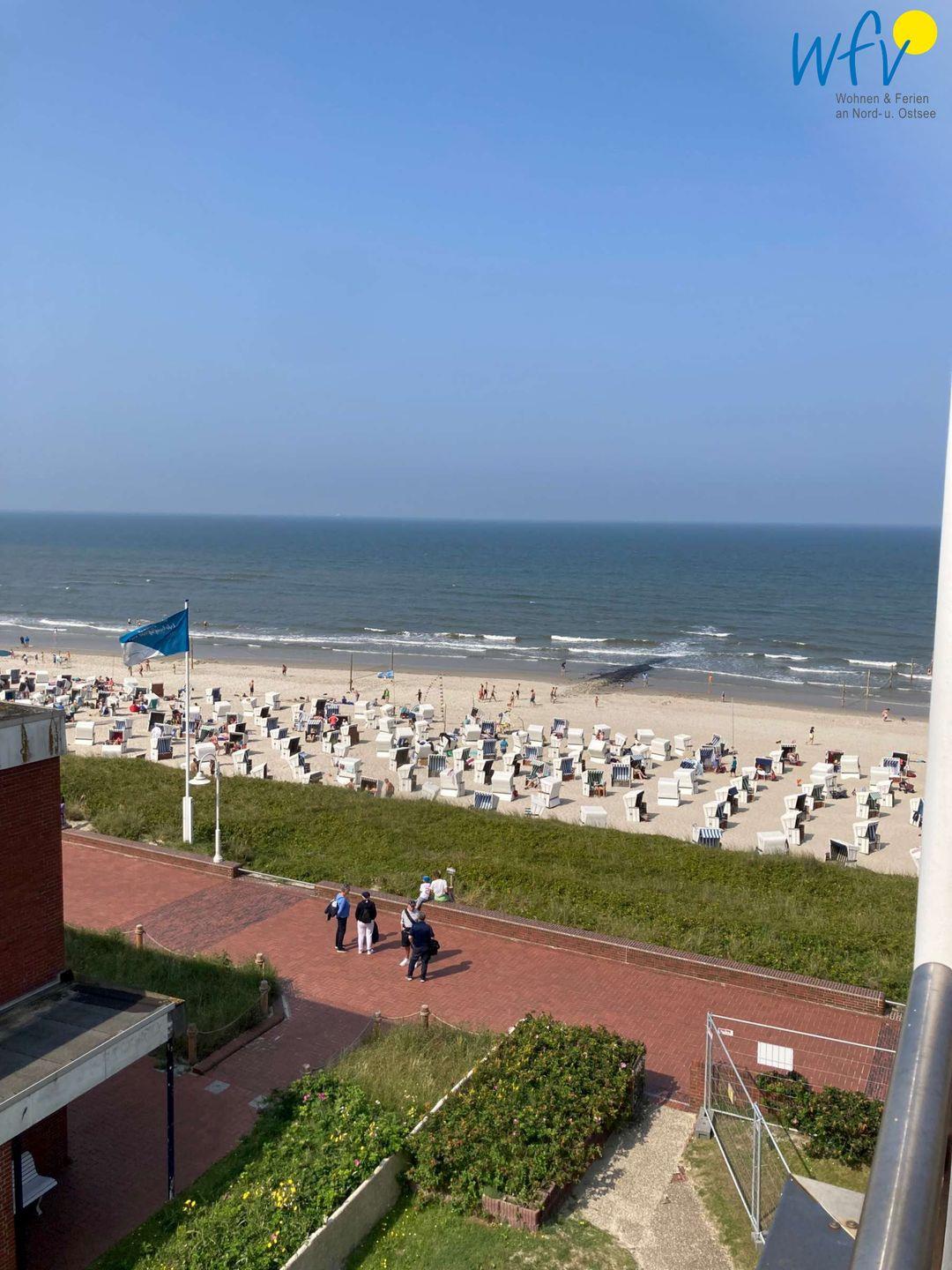 Wie der Name verspricht, genießen Sie in unserer Ferienwohnung "Nordseeblick" auf Wangerooge eine traumhafte Aussicht aufs Meer! Sowohl vom Wohnzimmer aus, als auch vom Balkon erwartet Sie ein wunderschönes Schauspiel aus Sandstrand und Wellenglitzer!