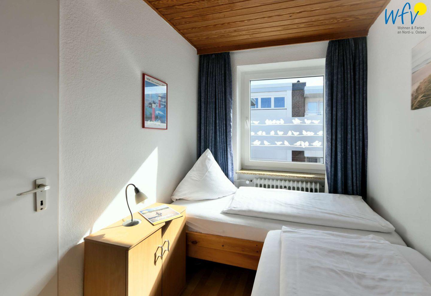 Zwei separate Schlafzimmer bieten Ihnen optimale Rückzugsmöglichkeiten. Eines der Zimmer ist mit einem Doppelbett ausgestattet, das andere mit zwei Einzelbetten. Verdunkelungsmöglichkeiten garantieren eine angenehme Nachtruhe.