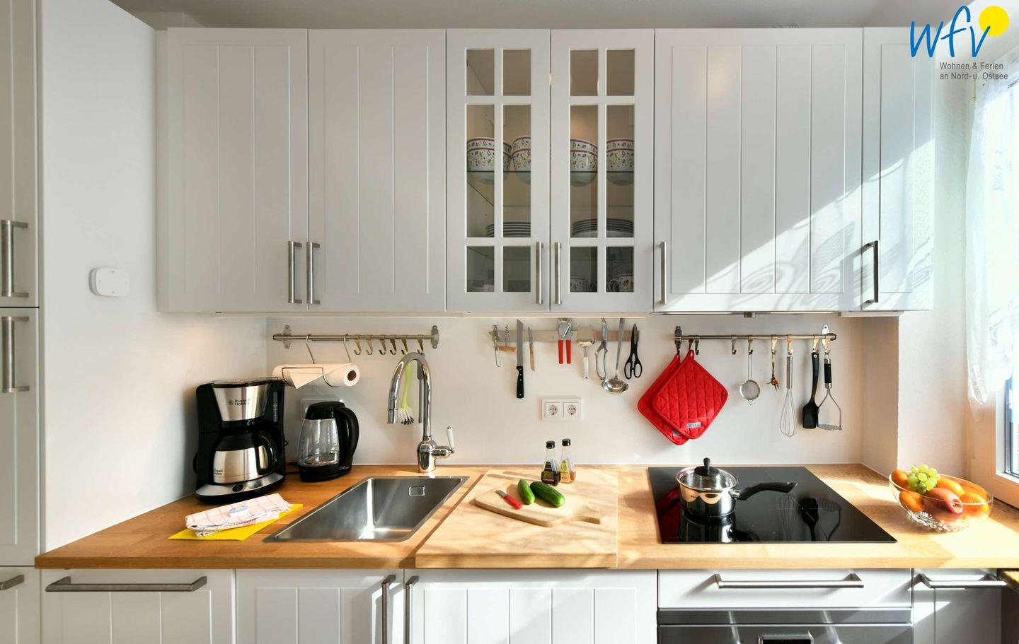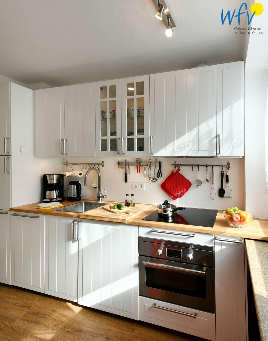 Für die Selbstverpflegung in Ihrem Urlaub verfügt die Ferienwohnung über eine neue und moderne separate Küche - u.a. mit Herd, Backofen, Mikrowelle und Spülmaschine.