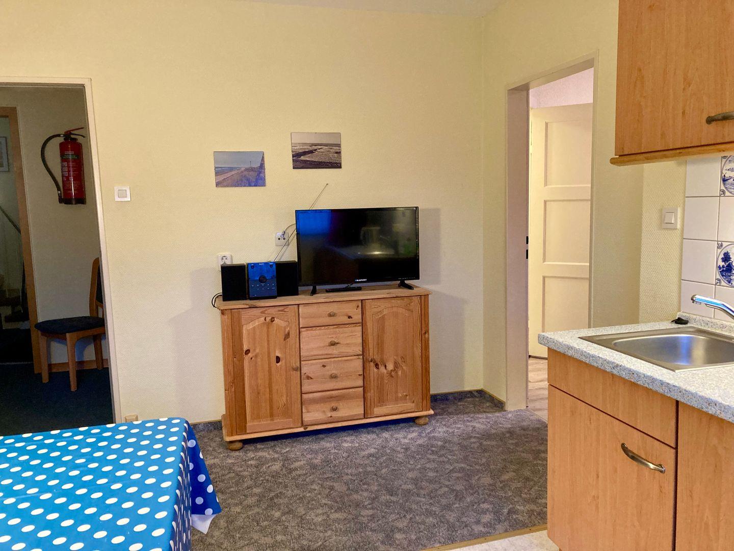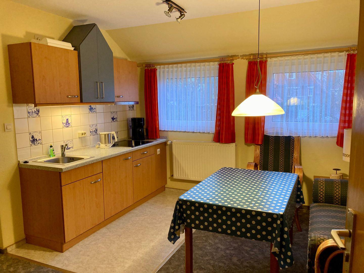 Es besteht aus einem geräumigen Schlafzimmer mit Doppelbett und einem Wohn-Essbereich mit angrenzender Küchenzeile. Diese beinhaltet alles, was man für eine bequeme Selbstverpflegung benötigt. Abgerundet wird diese Wohnung mit einem kleinen, aber feinen Badezimmer