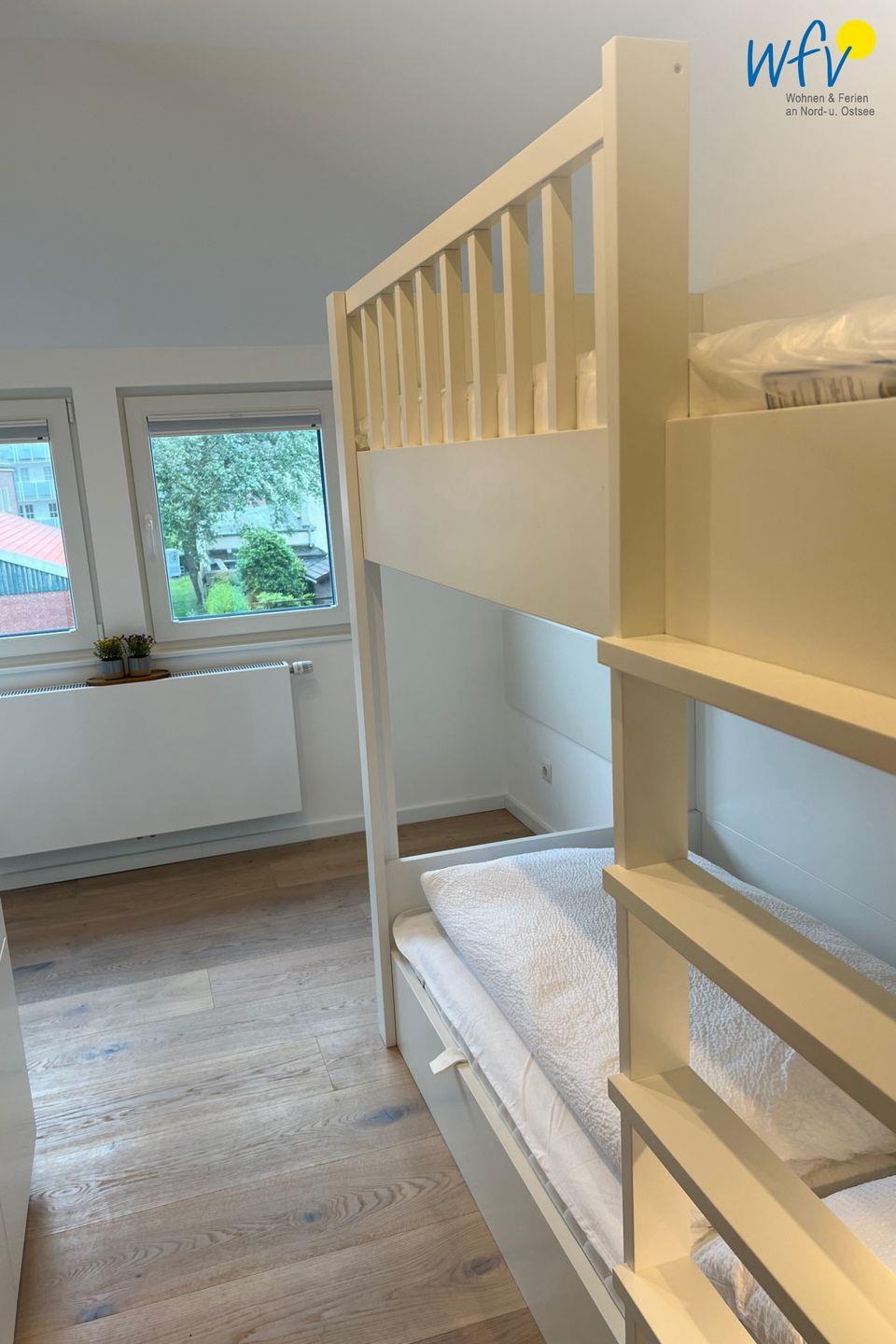 Drei separate Schlafzimmer bieten Ihnen in der Ferienwohnung angenehme Rückzugsmöglichkeiten. Zwei der Zimmer sind jeweils mit einem komfortablen Doppelbett ausgestattet( 1,80 m x 2,00 m) für weitere Gäste ist das dritte Schlafzimmer mit einem hübschen Etagenbett eingerichtet( 0,90 m x 2,00 m) Ihre Urlaubsgarderobe findet in den geräumigen Kleiderschränken Platz, ihre Gepäckstücke auf den separaten Kofferablagen.