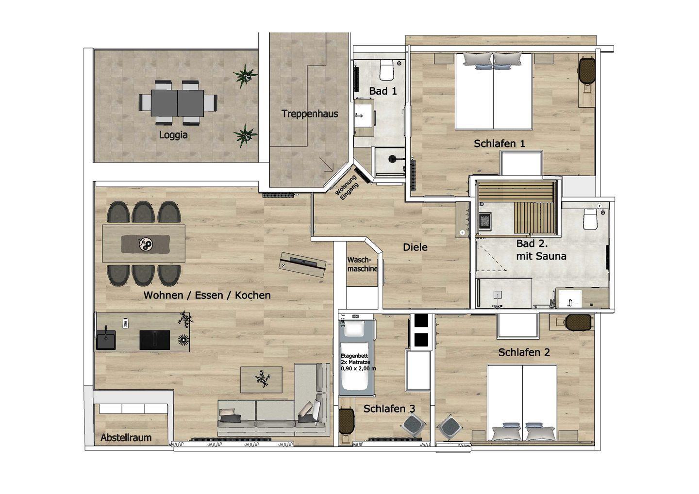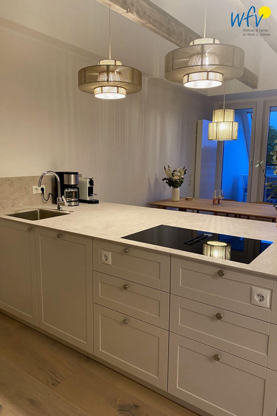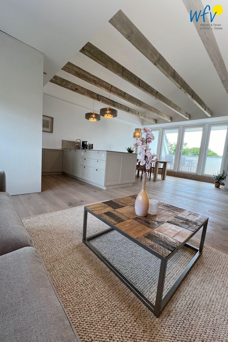 Eine hochwertige Einrichtung in hellen harmonischen Farben sowie ein schöner Lichteinfall lassen direkt ein Gefühl der Erholung aufkommen. Maritime Accessoires sorgen für schönes Flair und das entsprechende Nordseegefühl! Auf 115 m² Wohnfläche erwartet Sie ein komfortabel eingerichteter Wohn/Essbereich mit offener Küche sowie drei separate Schlafzimmer und zwei moderne Duschbäder. Eine wohnungseigene Sauna und eine hübsch möblierte Terrasse bieten Ihnen exklusiven Wohnkomfort!