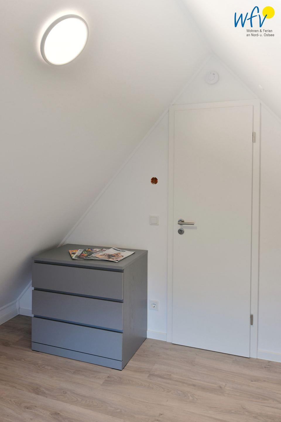 In dieser komfortablen Dachgeschosswohnung haben Sie Platz mit bis zu 8 Personen - perfekt für den Urlaub mit der großen Familie oder mit Freunden! Auf der ersten 1. Etage erwartet Sie ein großzügiger Wohnraum mit Couchecke und Essbereich, eine moderne offene Küche, zwei separate Schlafzimmer, ein Duschbad und ein Abstellraum sowie ein sonniger Balkon mit Südausrichtung. Im Spitzboden befinden sich zwei weitere Schlafzimmer und ein Gäste-WC mit niedriger Dusche.