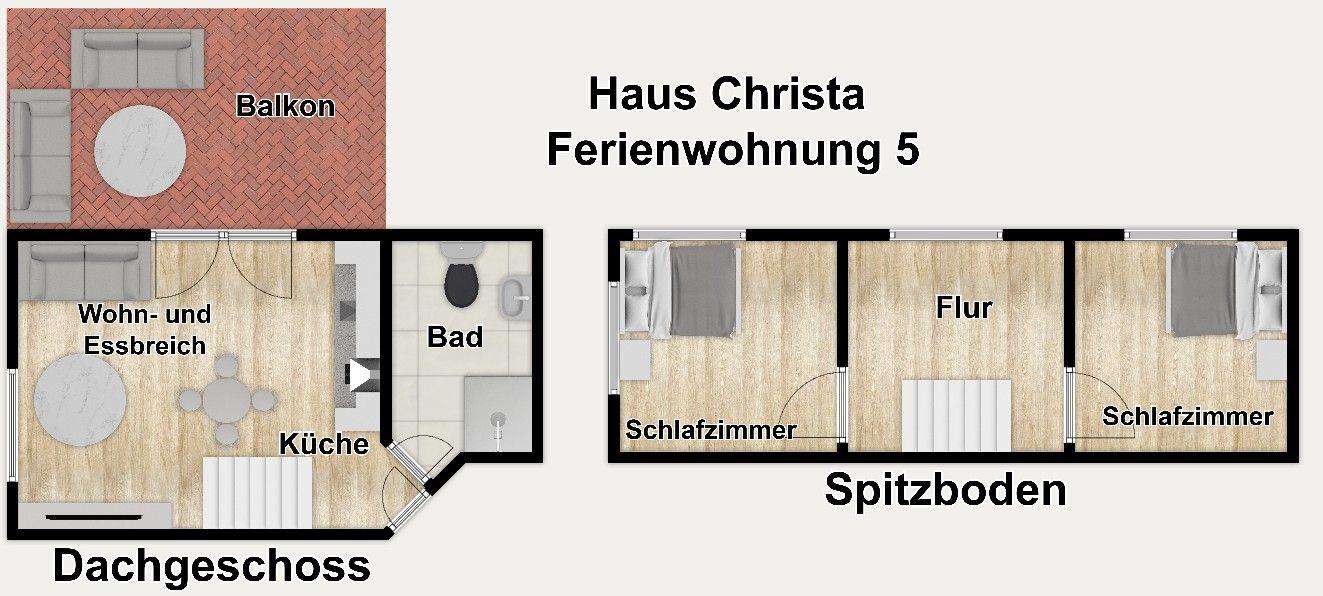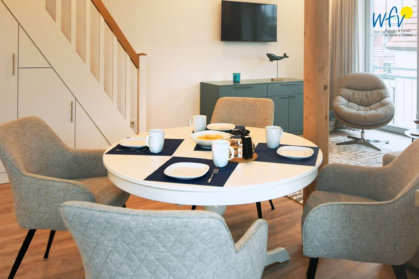 Erleben Sie Luxus und Komfort in der exklusiven Dachgeschosswohnung Haus Christa auf Wangerooge mit großer Dachterrasse.