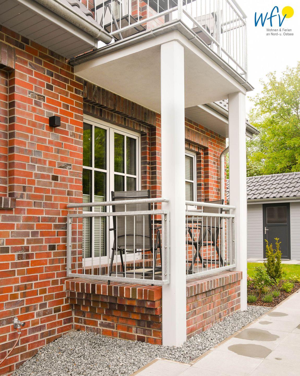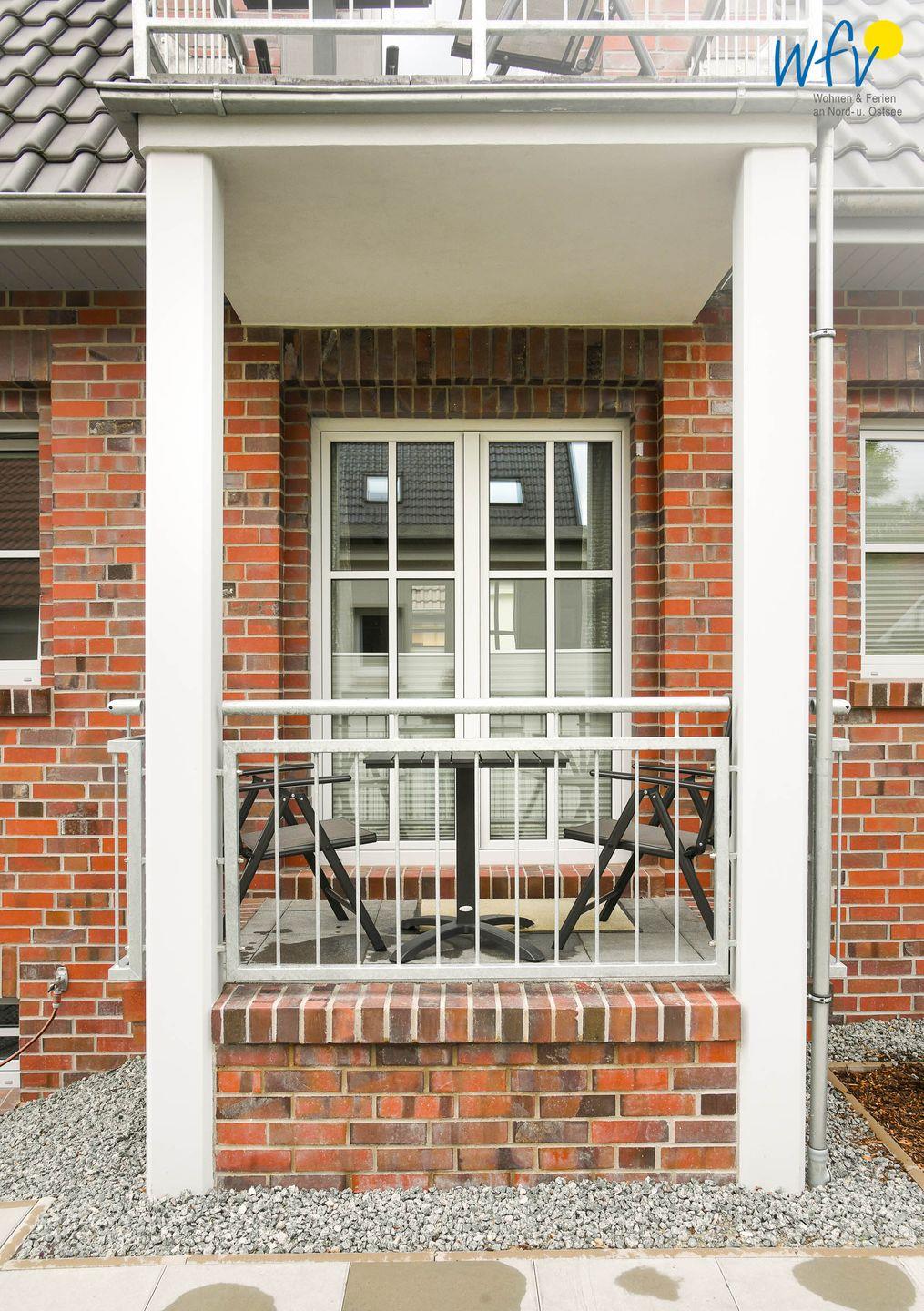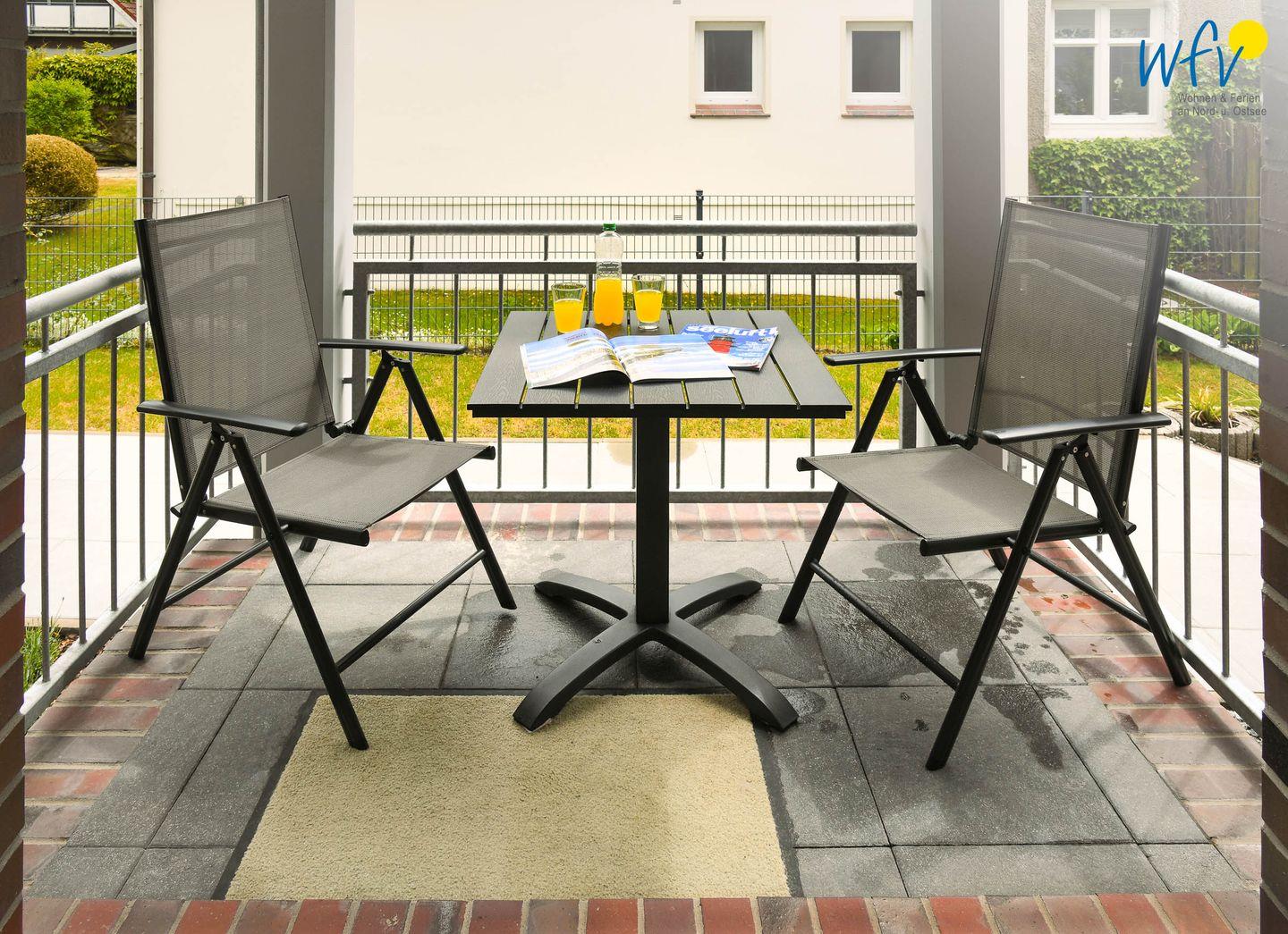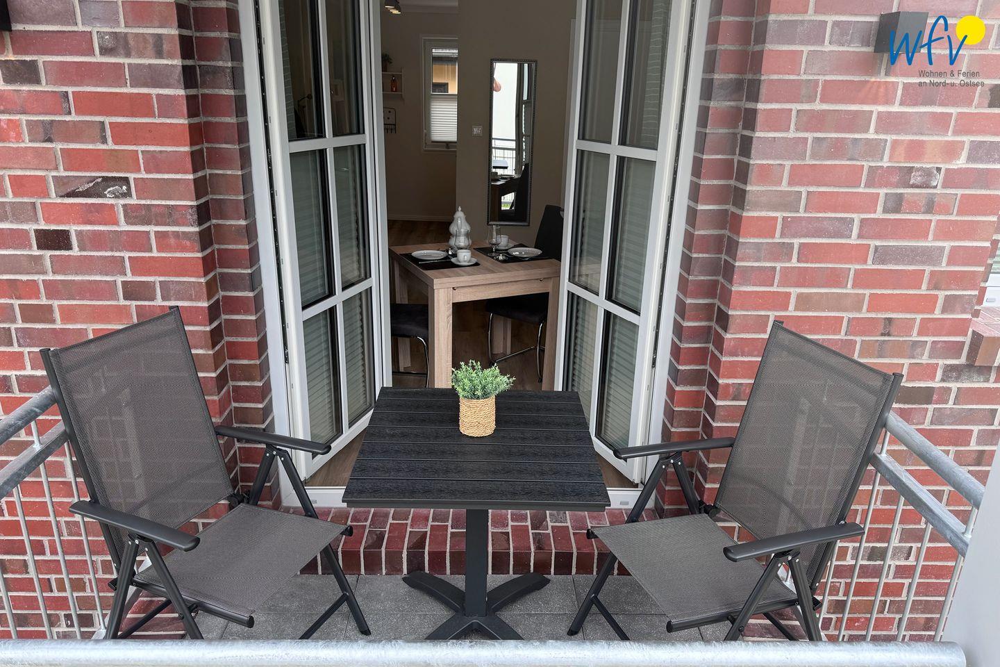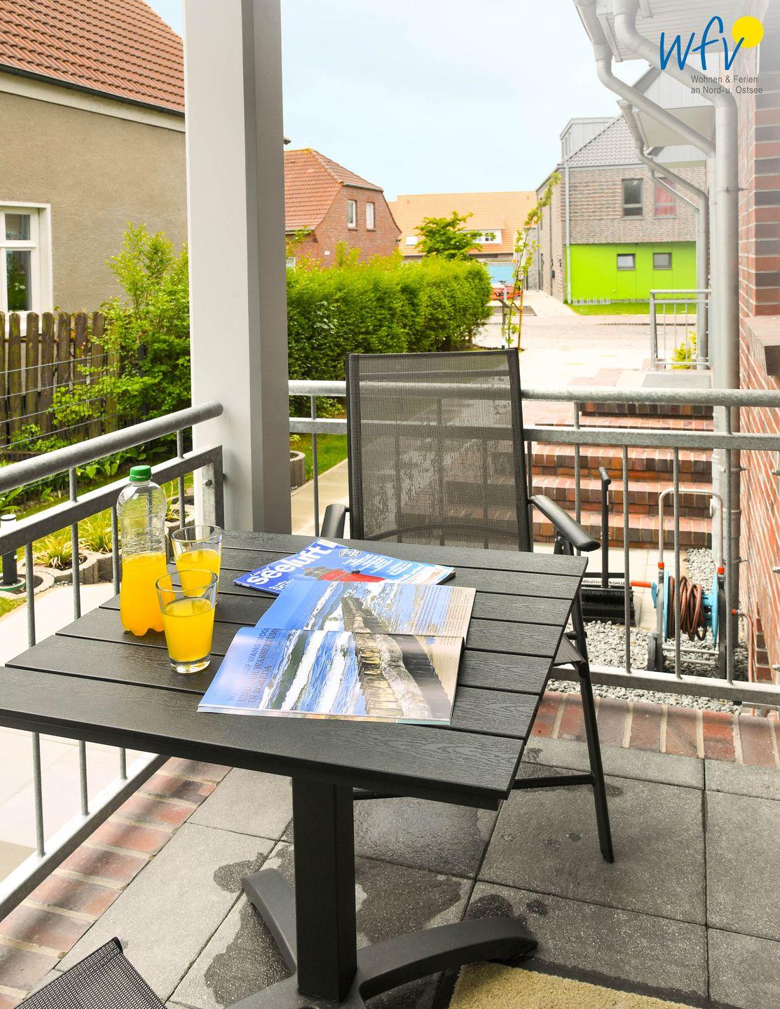 Gemütliche Ferienwohnung mit Balkon auf Wangerooge, ideal für erholsamen Nordseeurlaub zu zweit.