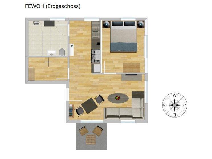 Hinweise: Die Wohnung befindet sich im EG. Es handelt sich um ein Nicht-Raucher-Objekt. Für Fahrräder ist ein Stellplatz vorhanden.