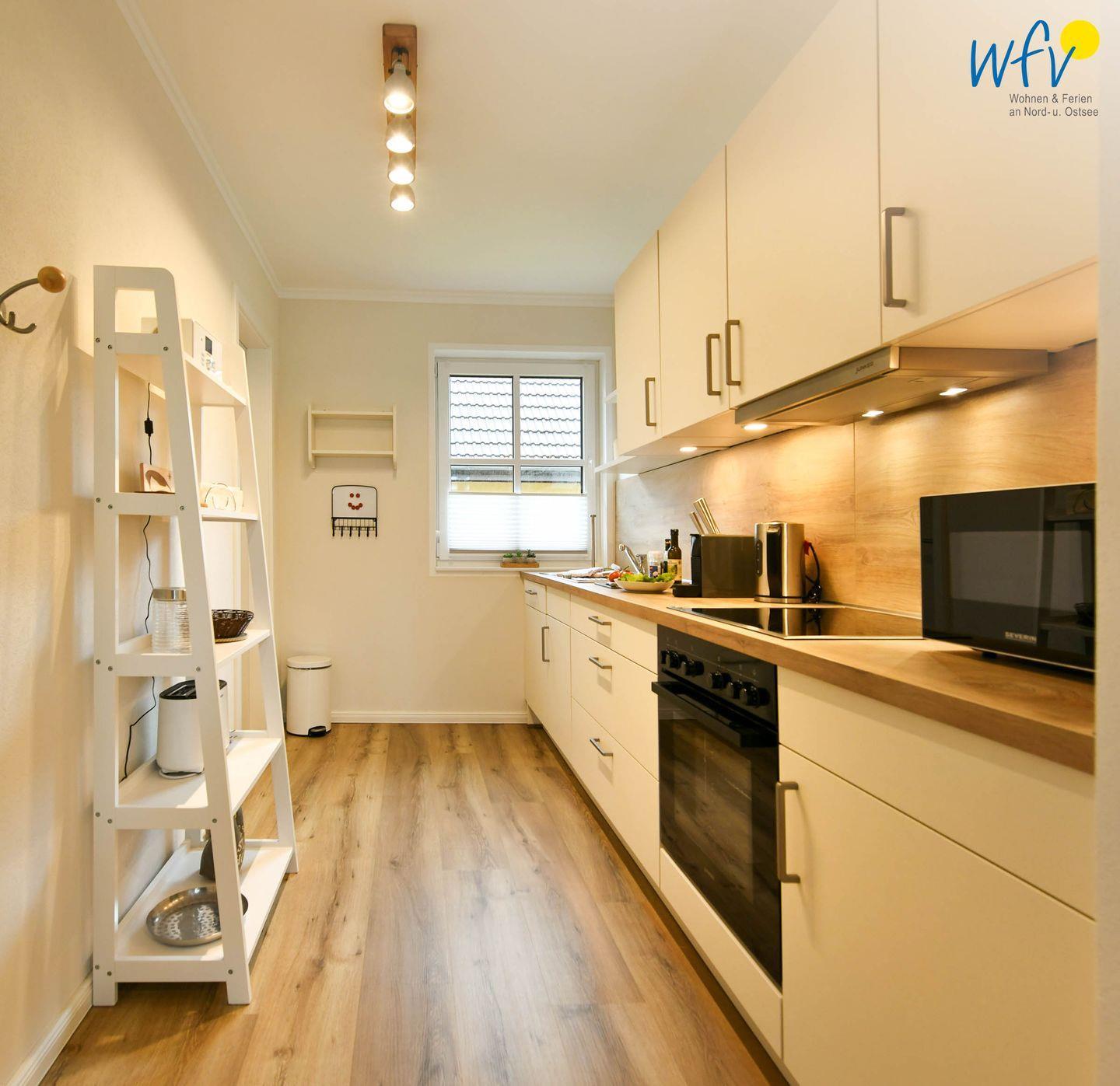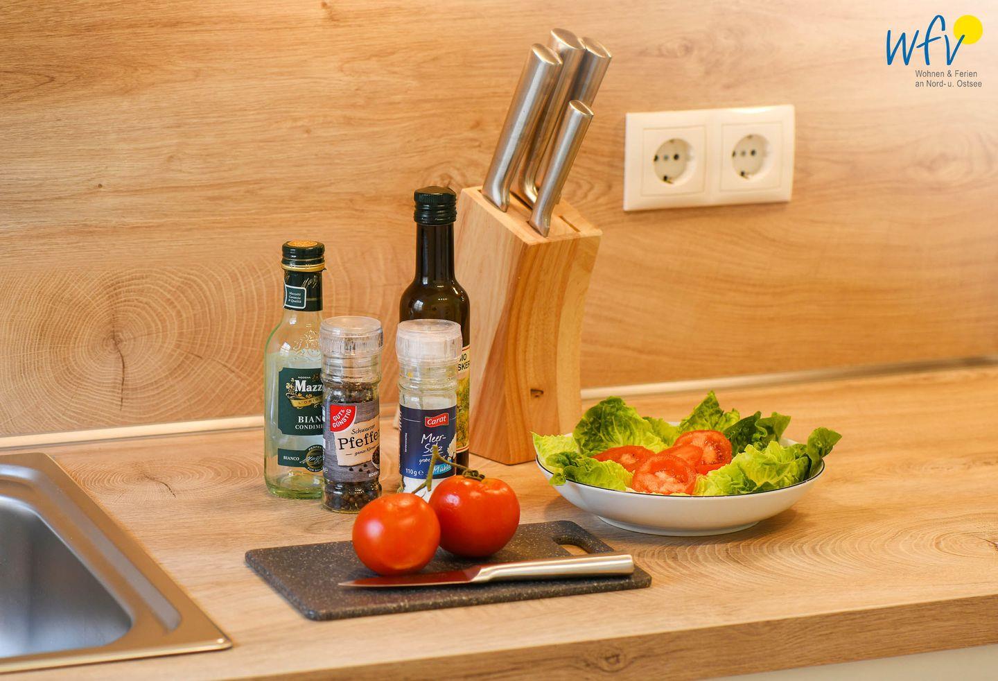 Die moderne offene Küche lässt Sie auch im Urlaub zu echten Gourmets werden. Ausgestattet ist sie u.a. mit einem Ceranherd, einem Backofen und einer Mikrowelle. Den Abwasch übernimmt die Spülmaschine.