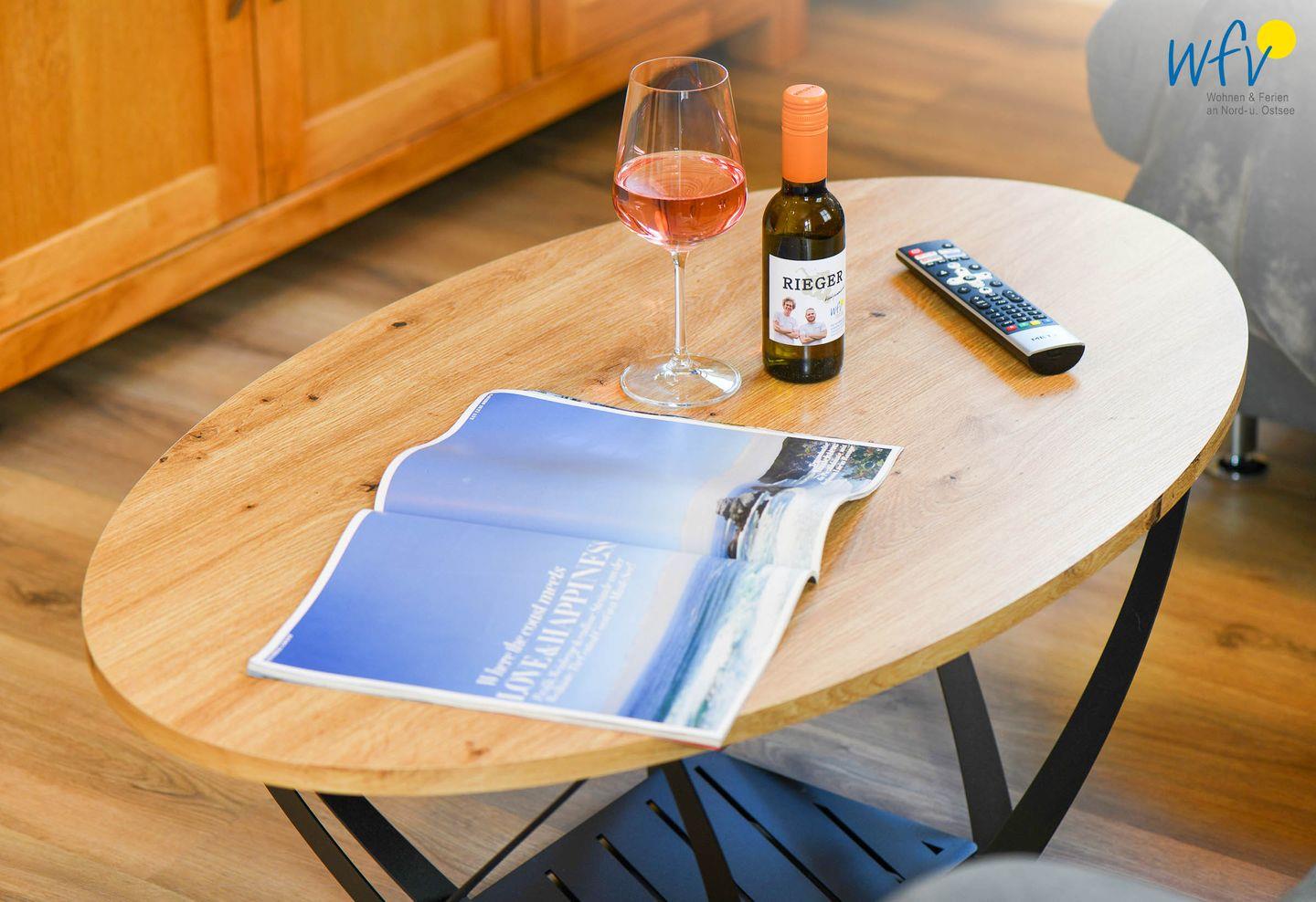 Der Wohnraum mit Couchecke und TV lädt zu Entspannungs- und Wohlfühlmomenten ein. Ein herrlicher Platz zum Filme schauen, Lesen oder einfach nur zum Relaxen. Zum Surfen vom Smartphone aus empfangen Sie freies WLAN.