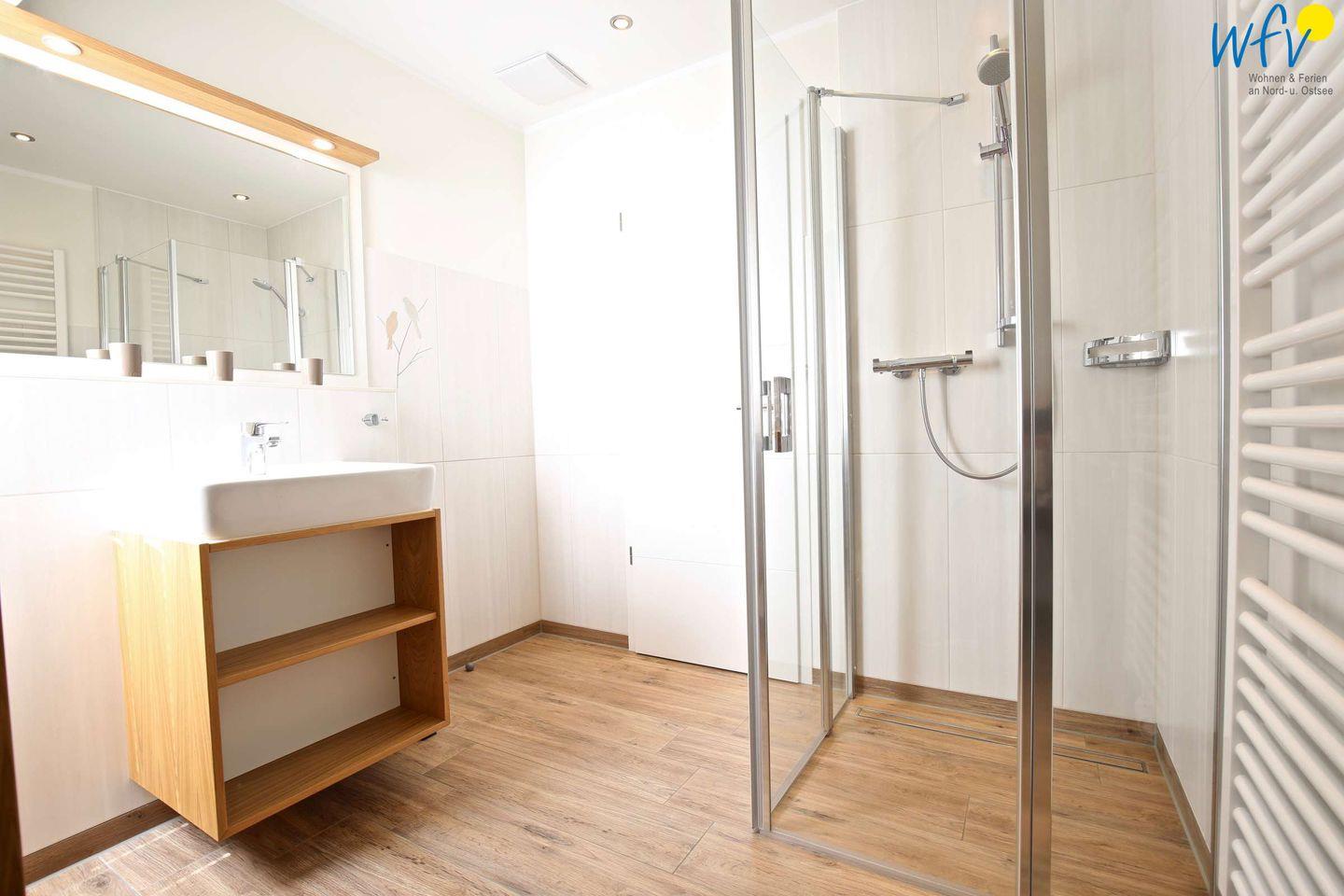 Zwei vollausgestattete Tageslichtbäder überzeugen mit elegantem Design; zudem sorgt eine wohnungseigene Sauna für weitere Exklusivität in Ihrem Urlaub. Perfekt für die wohltuende Entspannung nach dem Strandspaziergang!
