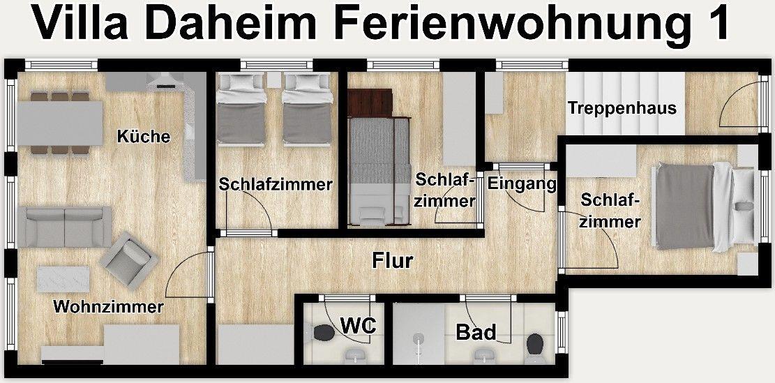 Herzlich willkommen in der "Villa Daheim" Ferienwohnung 1 – Ihrem schönen Rückzugsort auf der malerischen Insel Wangerooge nur ca. 50 m vom Sandstrand entfernt. Diese charmante und kinderfreundliche Ferienwohnung erstreckt sich über großzügige 63 m² im ersten Stock und bietet Ihnen ein modernes und gemütliches Ambiente für erholsame Urlaubstage. Ideal für Ferien mit der Familie oder mit Freunden!