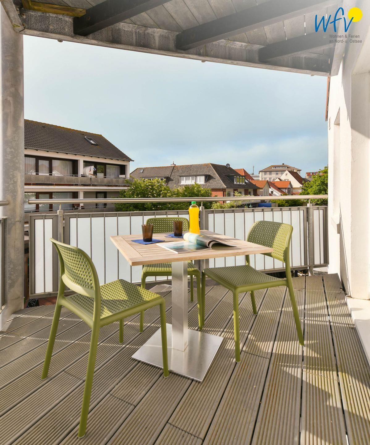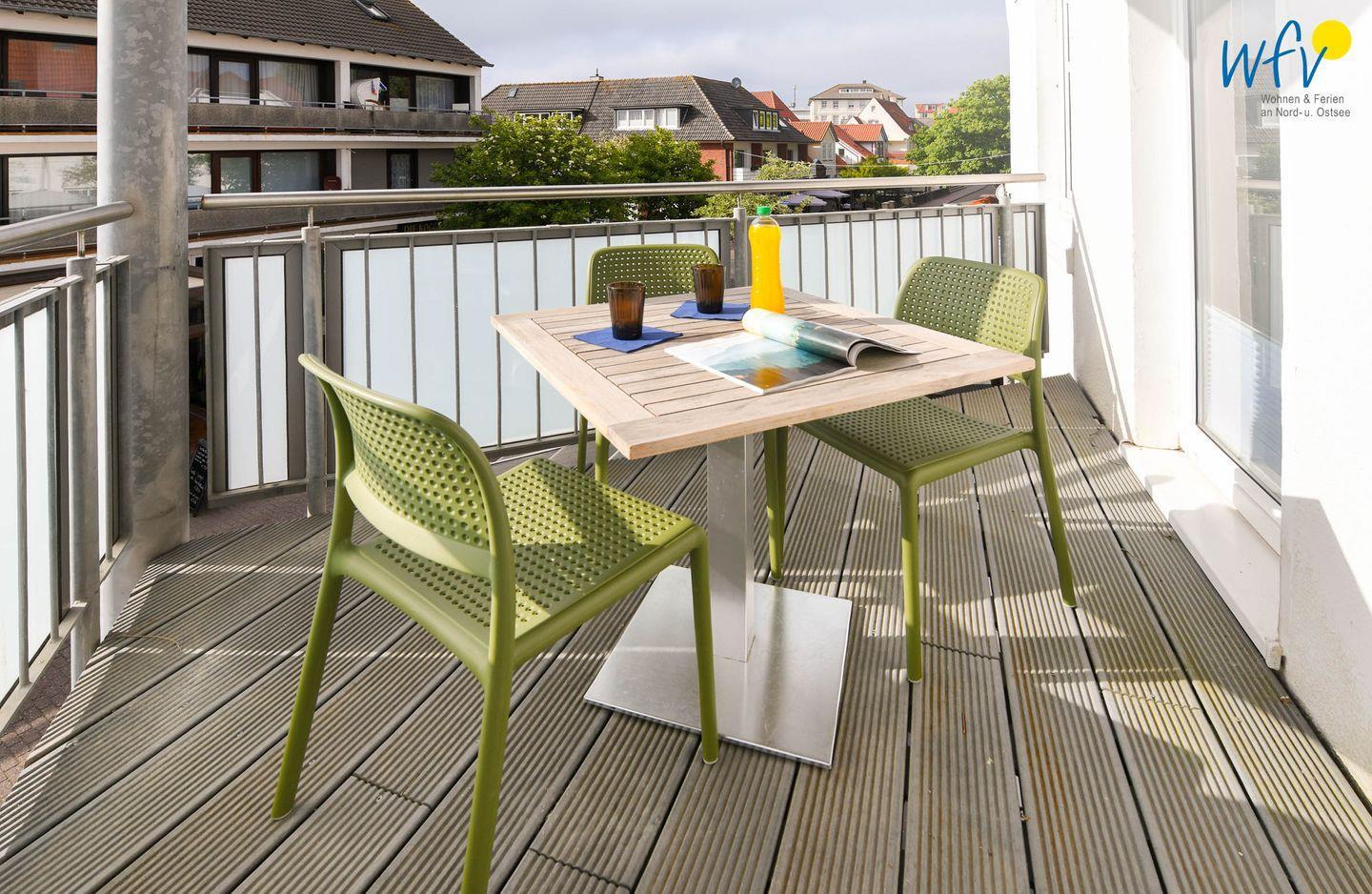 Auf dem schönen Balkon der Ferienwohnung genießen Sie die wohltuende Nordseebrise! Bequeme Balkonmöbel laden hier zum Ausspannen und Relaxen ein - ein herrliches Urlaubsgefühl...