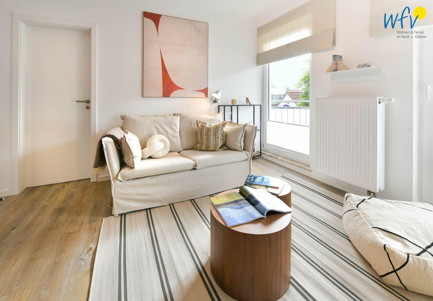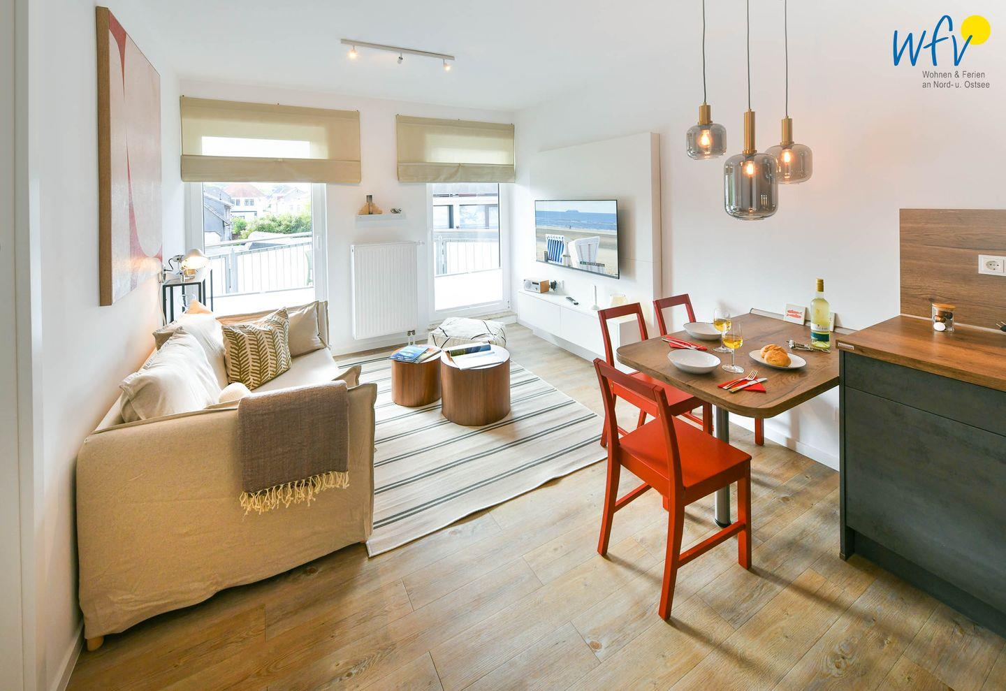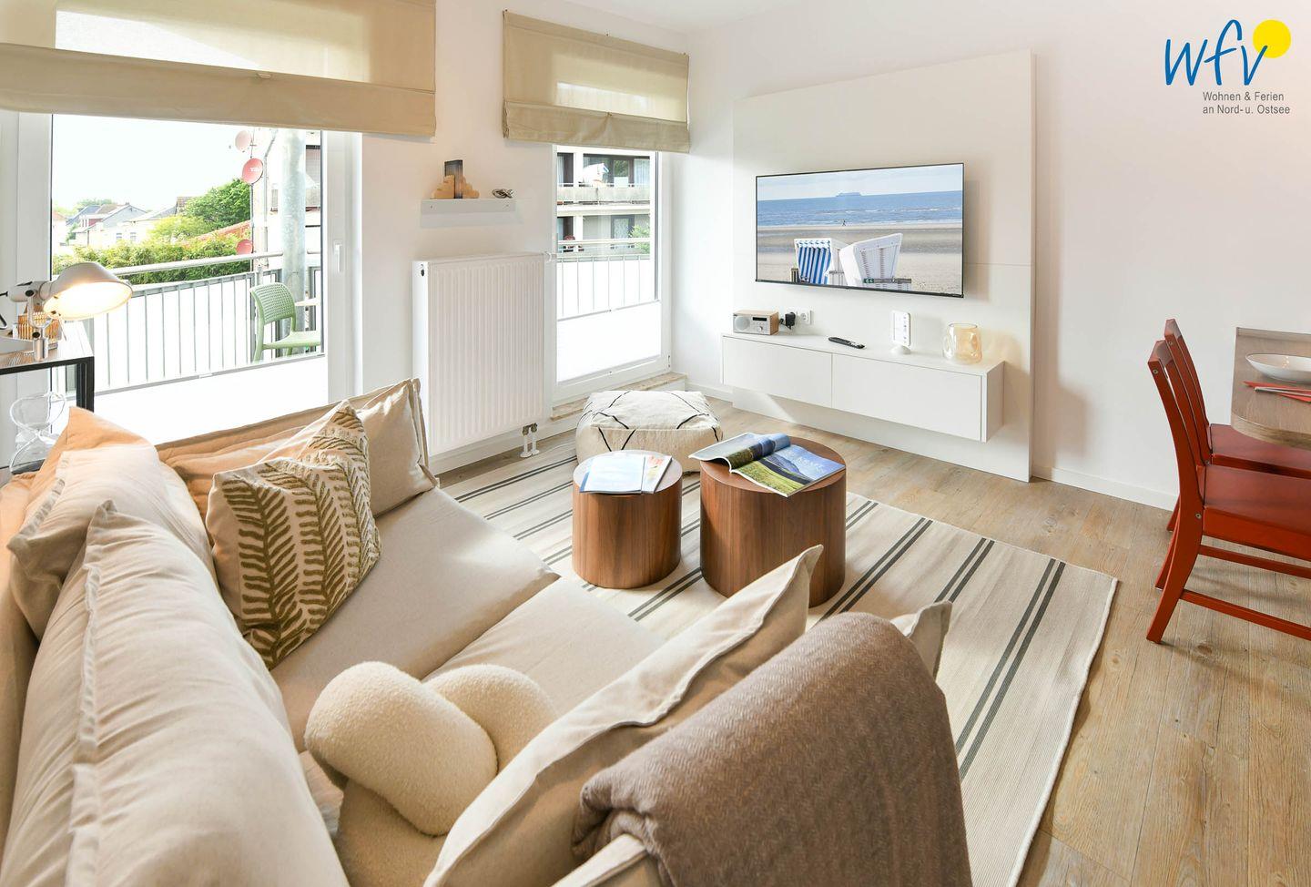 Gemütliche Ferienwohnung Brise auf Wangerooge mit modernem Komfort und Balkon für entspannte Nordseeurlaube zu zweit.