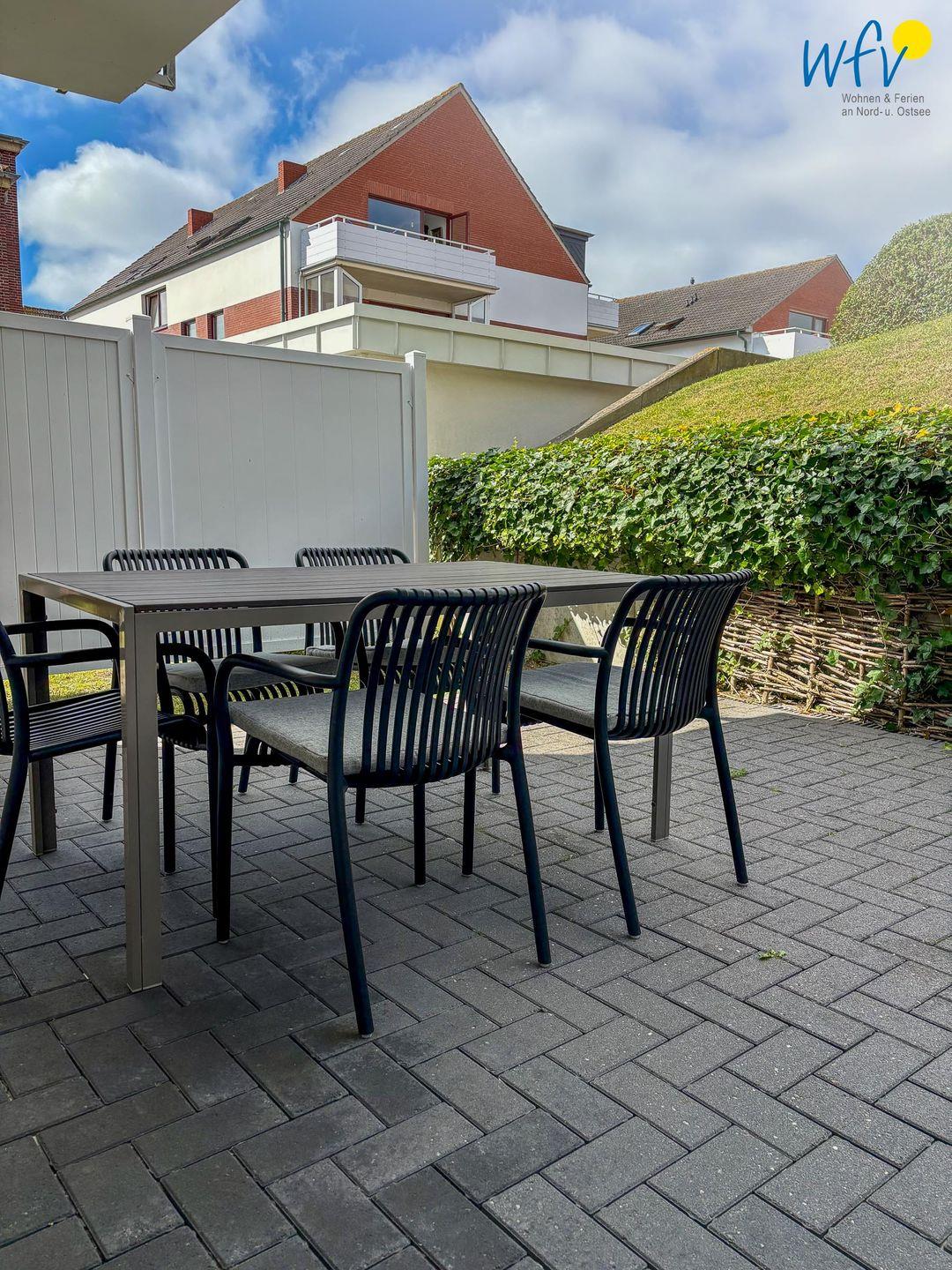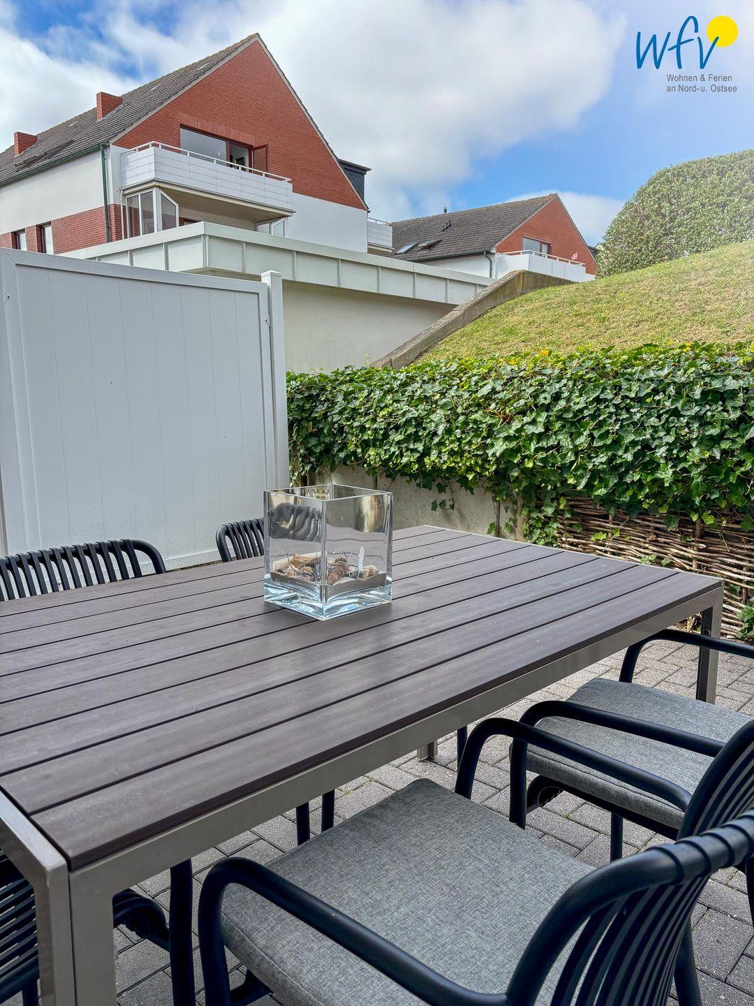 Genießen Sie die frische Nordseeluft auf der großen Sonnenterrasse (ca. 30 m²) mit bequemen Gartenmöbeln. Sie eignet sich perfekt für erholsame Stunden im Freien, sei es beim gemeinsamen Ferien-Frühstück oder beim gemütlichen Ausklang des Abends. Ein besonderes Highlight der Unterkunft ist die private Sauna, die Ihnen die Möglichkeit bietet, nach einem erlebnisreichen Tag ausgiebig zu entspannen. Angrenzend schließt sich ein modernes Tageslichtbad in stilvollem Design an.