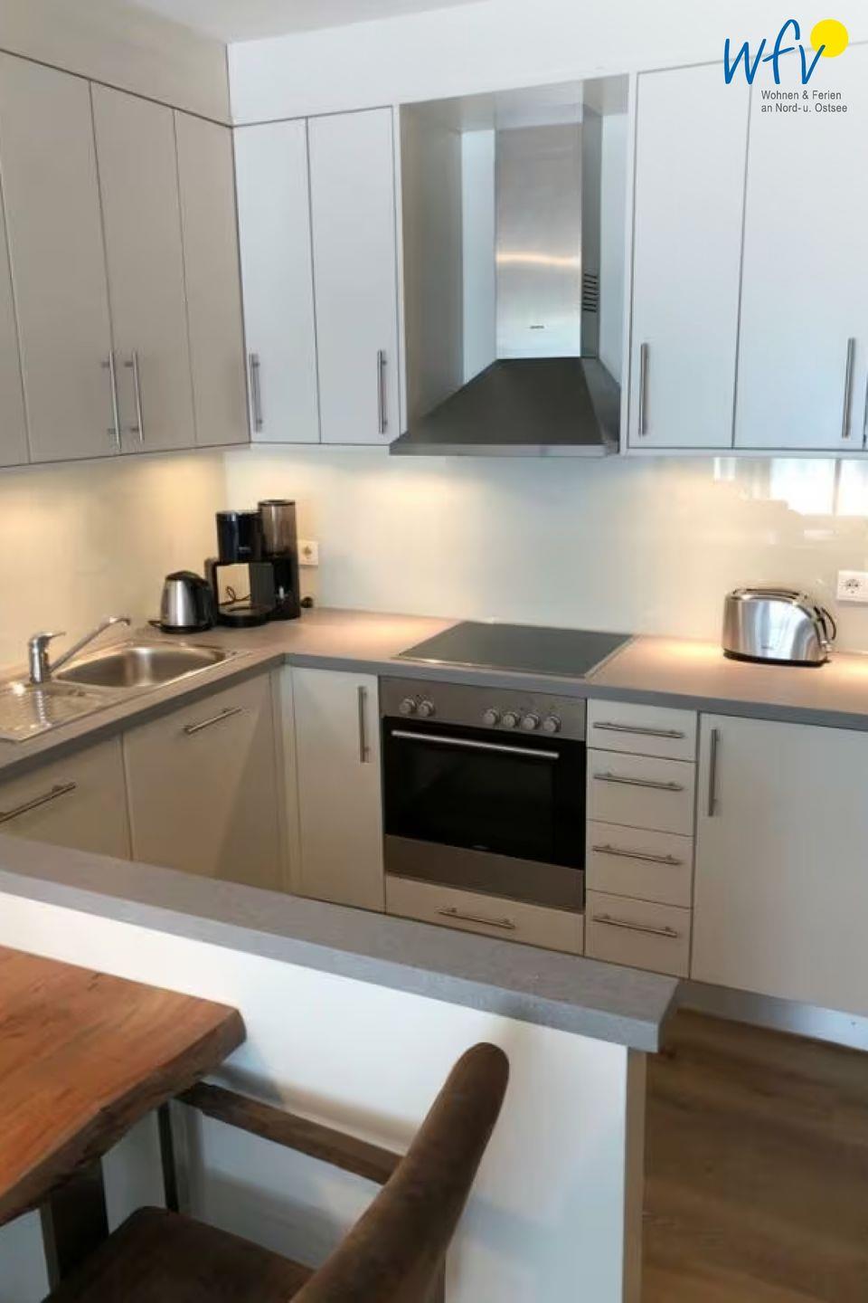 Die Wohnung überzeugt durch ihre offene und lichtdurchflutete Gestaltung, die eine einladende Atmosphäre schafft. Der gemütliche Wohnbereich ist mit einem Sofa und einem Essbereich ausgestattet, der Platz für gemeinsame Mahlzeiten bietet. Die hochwertige Einrichtung umfasst einen modernen Fernseher sowie freies WLAN, sodass Sie auch im Urlaub online bleiben können. Die moderne Küche ist voll ausgestattet und lässt keine Wünsche offen: vom Herd über die Mikrowelle bis hin zur Spülmaschine – hier kann jeder Hobbykoch seine kulinarischen Fähigkeiten entfalten.