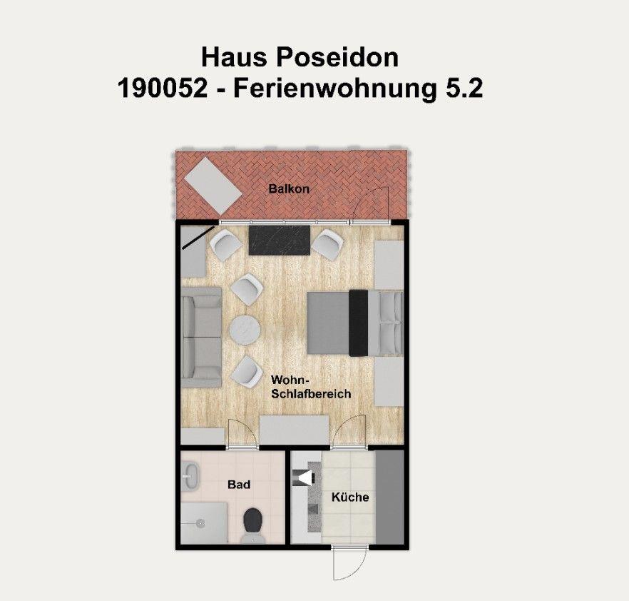 Willkommen in der "Ferienwohnung 5.2" im Haus Poseidon auf Wangerooge, eine Wohlfühloase mit Meerblick für zwei Personen! Genießen Sie einen gemütlichen Wohnraum, eine moderne Kochnische und einen überdachten Balkon mit Strandkorb. Ob für Paare oder kleine Familien – buchen Sie jetzt Ihr persönliches Strandparadies!