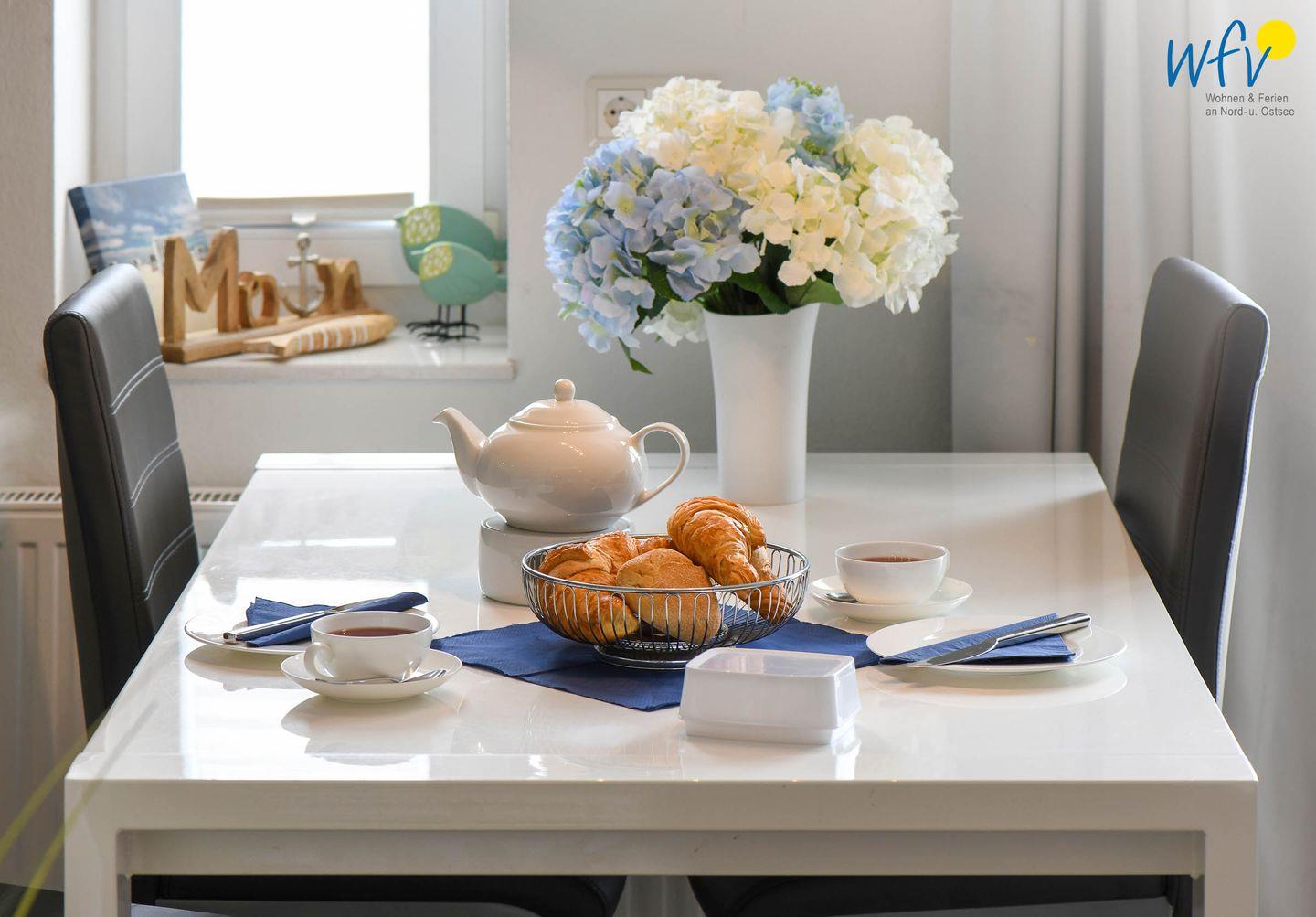 Im Urlaub wird auch das Kochen zum Genuss! In der offenen modernen Küche lassen sich bequem leckere Gerichte oder Snacks für zwischendurch zaubern. Während auf dem Ceranherd der knusprige Nordseefisch brutzelt, bräunen im Backofen die Rosmarinkartoffeln. Den Abwasch erledigt die Spülmaschine. So können Sie rundum eine Selbstversorgung mit frischen lokalen Produkten aus der Umgebung genießen.