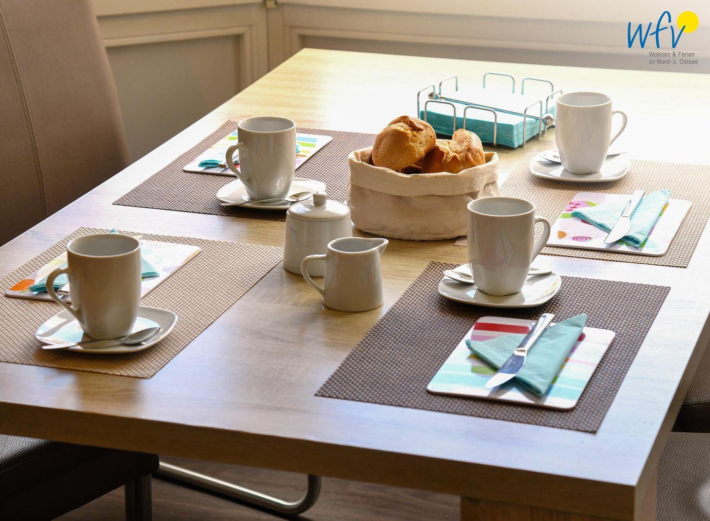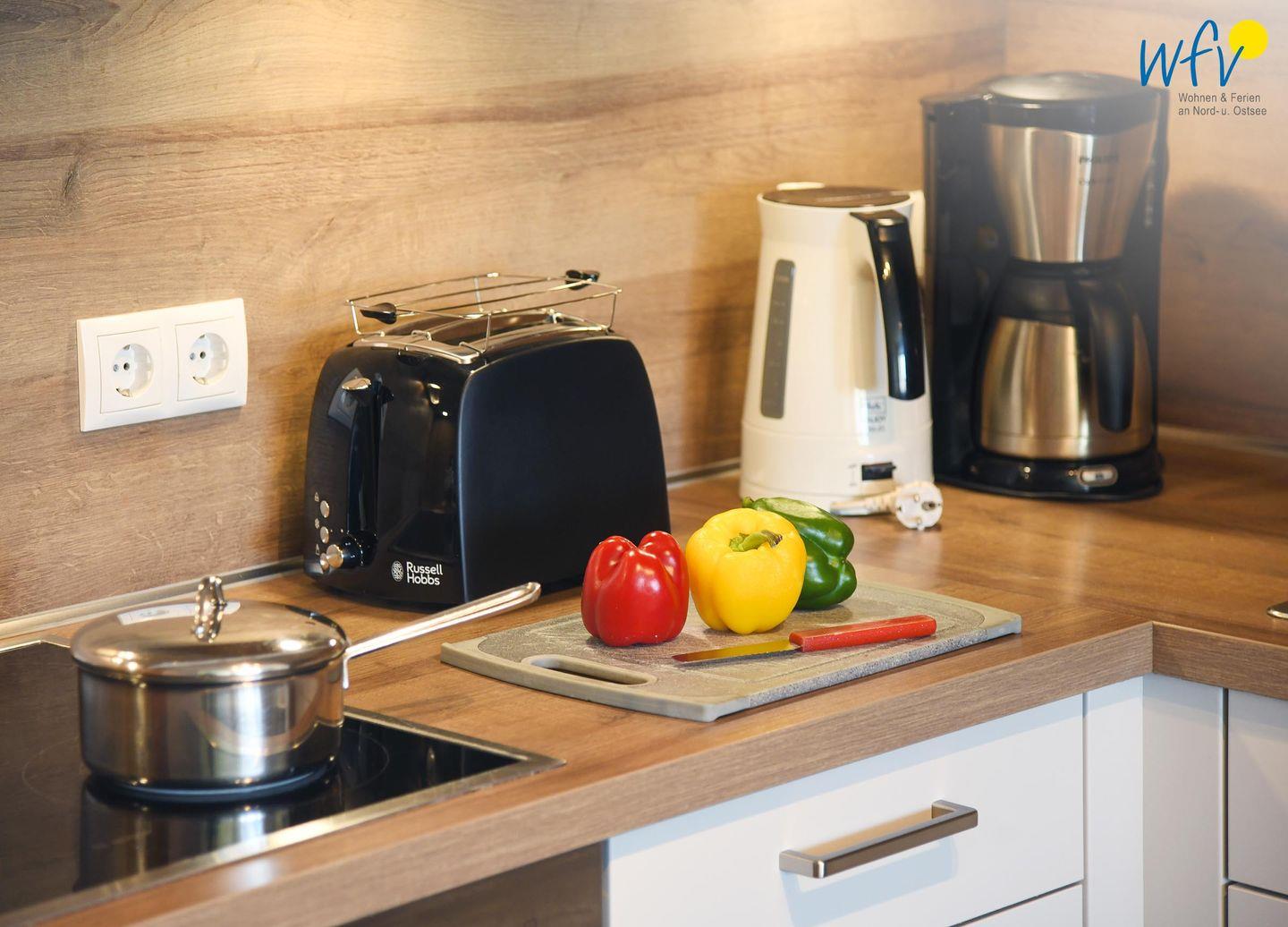 Bereits beim Ferienfrühstück beginnen Sie den Urlaubstag mit einem herrlichen Ausblick aufs Meer. In Gedanken wird schon die Badetasche gepackt oder der Rucksack für den Strandspaziergang. Warme Frühstücksbrötchen, kleine Snacks für den Ausflug und leckere Mahlzeiten lassen sich in der modernen offenen Küchenzeile zubereiten. Hochwertige Geräte wie ein Ceran-Herd, ein Backofen, ein Racletteeisen, eine Mikrowelle, ein Kühlschrank mit Gefrierfach und ein Geschirrspüler ermöglichen Ihnen hier eine bequeme Selbstverpflegung und gemeinsame Kochabende.