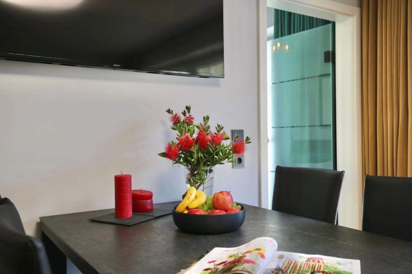 Die offene Küche lädt zu kulinarischen Erlebnissen ein und ist vollständig ausgestattet mit hochwertigen Küchenutensilien, einem modernen Ceranherd, einem Backofen, einer Spülmaschine und einem Kühlschrank mit Gefrierfach. Ob Sie ein einfaches Frühstück zubereiten oder ein festliches Abendessen zaubern möchten – alles, was Sie benötigen, finden Sie hier. Für zusätzlichen Komfort sind eine Waschmaschine und ein Trockner ebenfalls vorhanden, sodass Sie sich um Ihre Wäsche keine Sorgen machen müssen.
