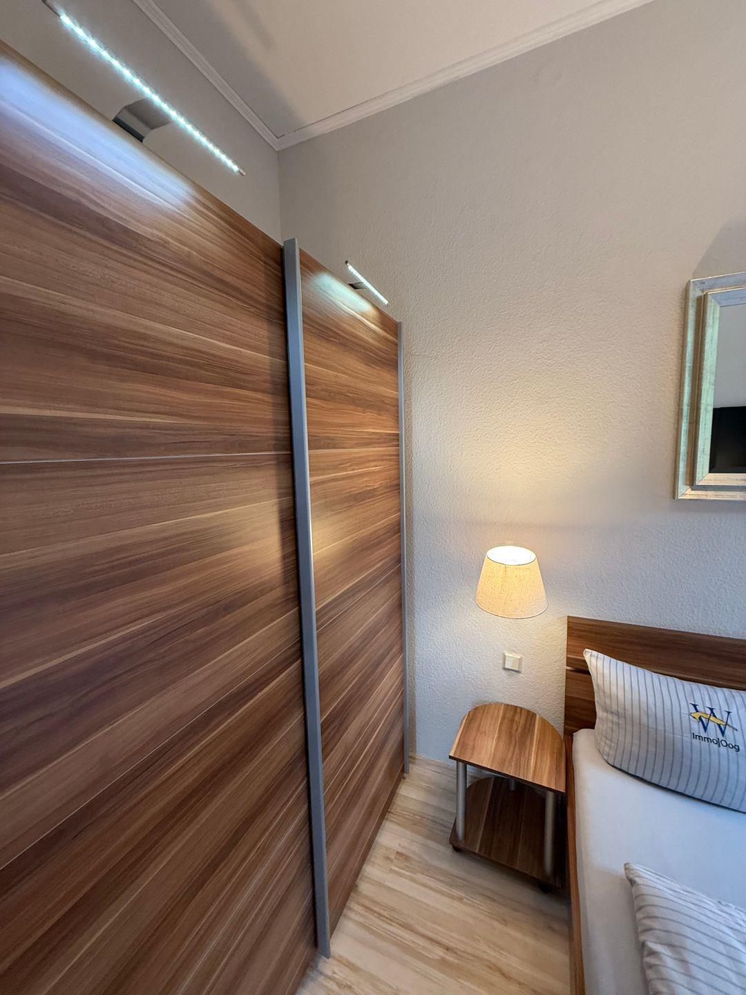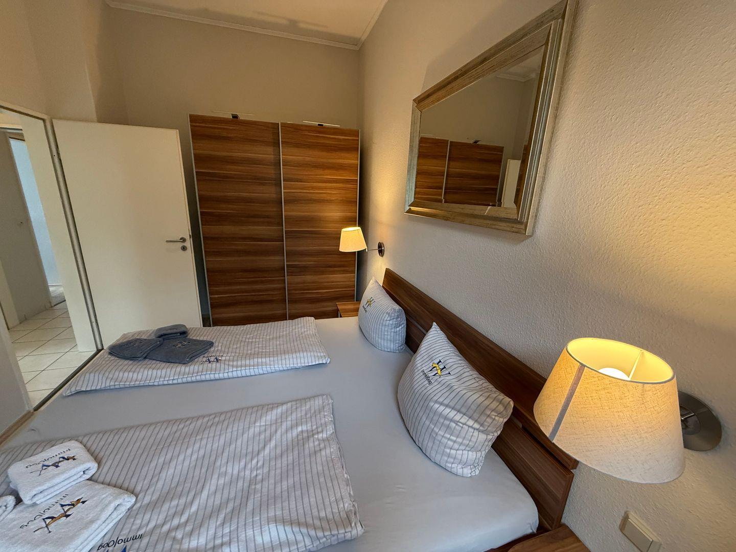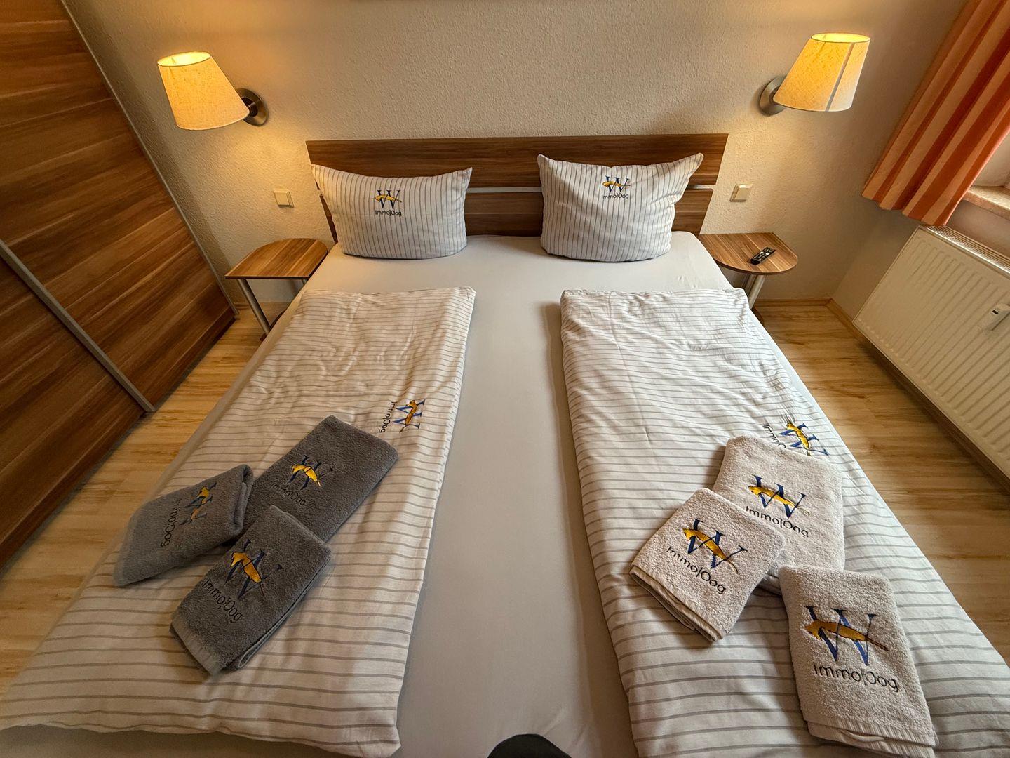 Die Ferienwohnung verfügt über zwei Schlafzimmer mit Laminatboden, die für unterschiedliche Bedürfnisse eingerichtet sind. Hier können Sie erholsame Nächte verbringen. Der offene, freundlich gestaltete Wohnraum verbindet Gemütlichkeit mit Funktionalität und lädt zum Entspannen nach einem erlebnisreichen Tag an der Nordsee ein.