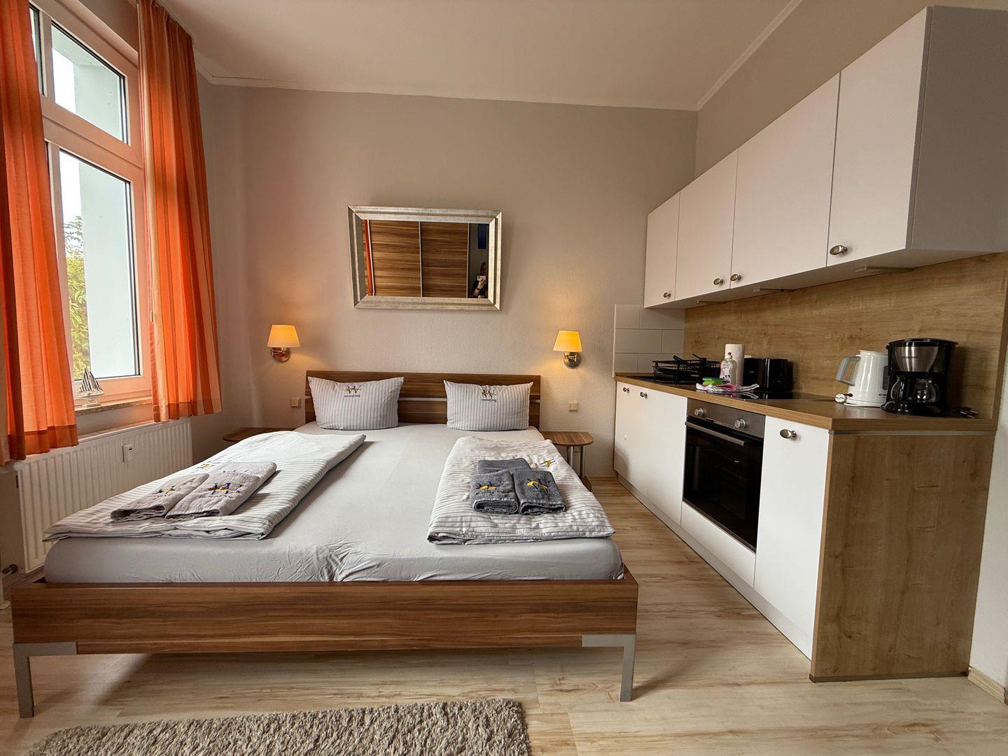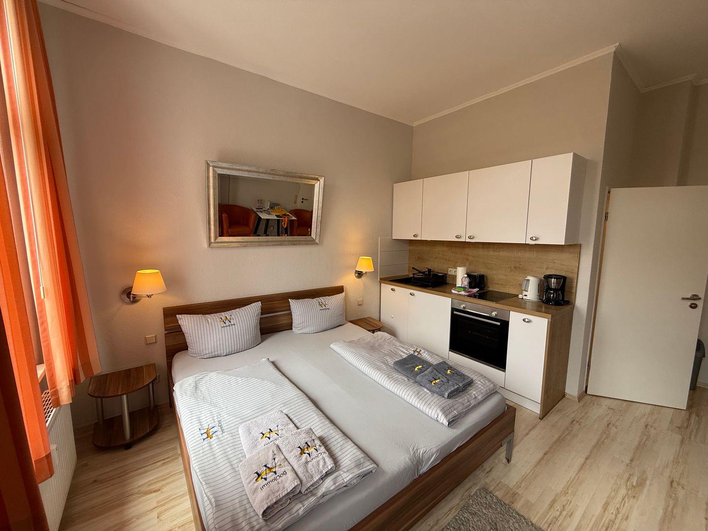 Das 20 m² große Apartment ist ideal für ein bis zwei Personen konzipiert und eignet sich besonders für Paare, Alleinreisende oder Geschäftsreisende. Die Unterkunft ist als Nichtraucher-Apartment ausgewiesen und empfängt Sie auf Anfrage gerne auch mit einem Haustier. Die Böden sind mit Laminat ausgelegt, was eine moderne und pflegeleichte Umgebung schafft.