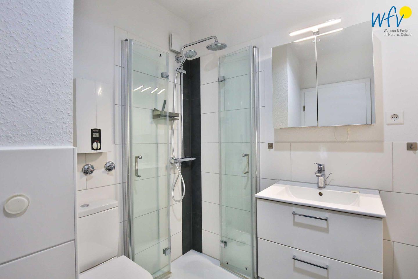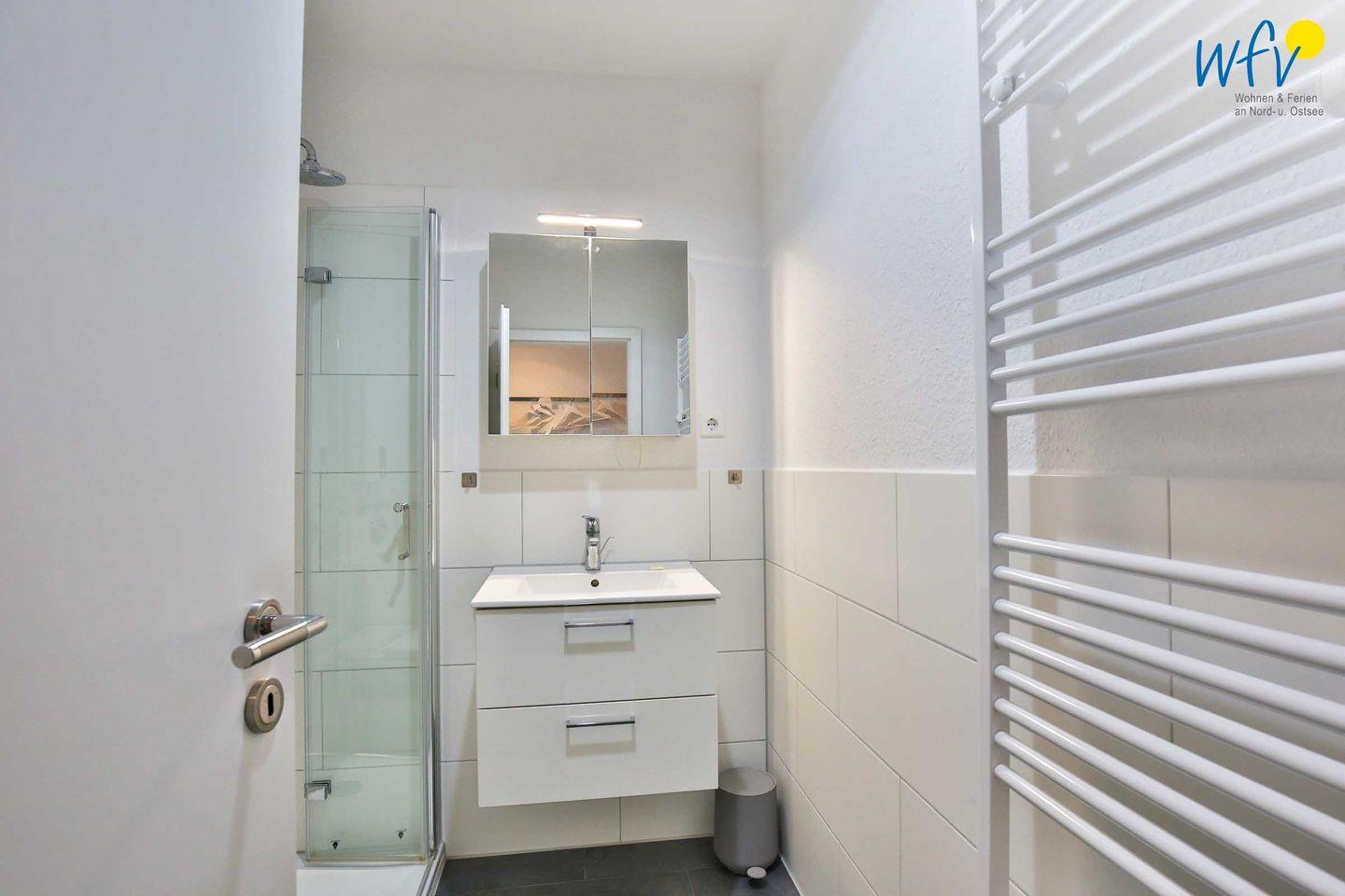 Ein modernes Duschbad mit barrierefreier Dusche ergänzt den Wohnkomfort.