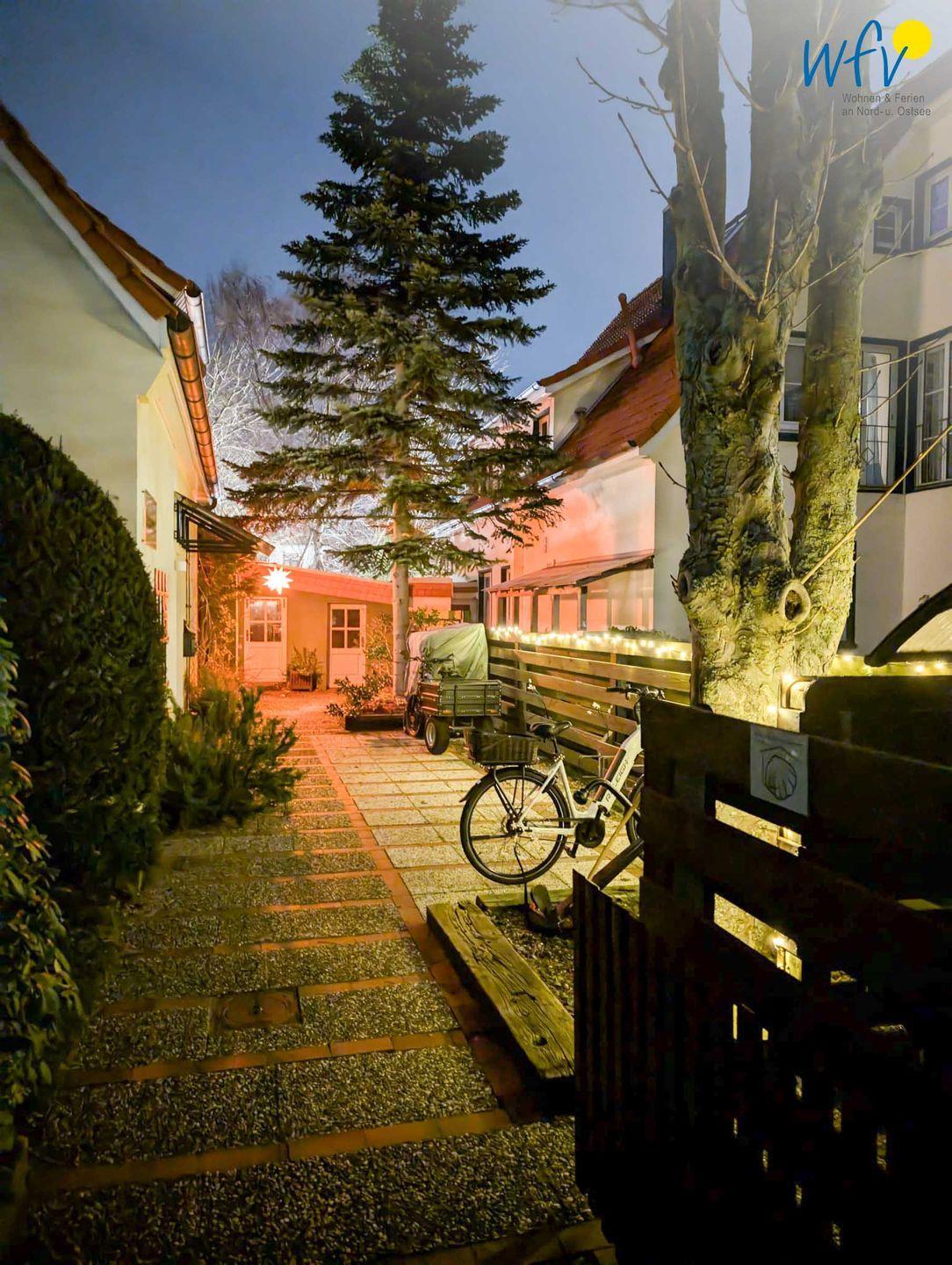 Gemütliche Ferienwohnung auf Wangerooge mit Gemeinschaftsgarten und strandnaher Lage, ideal für Familien und Erholung an der Nordsee.