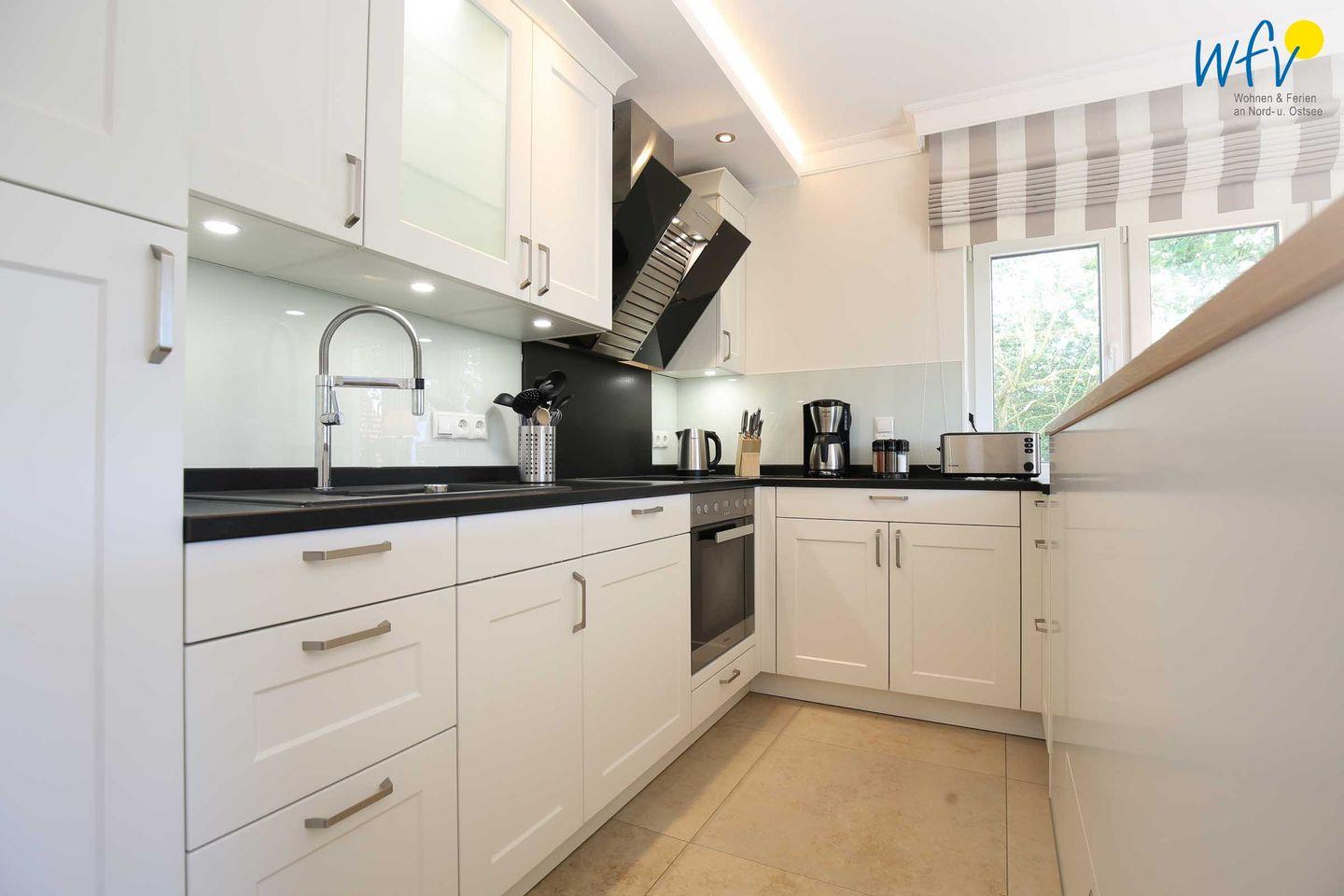 Die moderne Küche mit Granitarbeitsplatte lässt Sie auch im Urlaub zu Gourmets werden. Ausgestattet ist sie u.a. mit einem Cerankochfeld, einem Backofen und einer Mikrowelle, den Abwasch übernimmt die Spülmaschine. Küche, Essbereich und Couchecke bilden ein geselliges Ensemble, sodass gemeinsame Mahlzeiten, Spieleabende oder Filmabende möglich sind. Einige Spiele sind vorhanden, die Sie gerne benutzen dürfen.