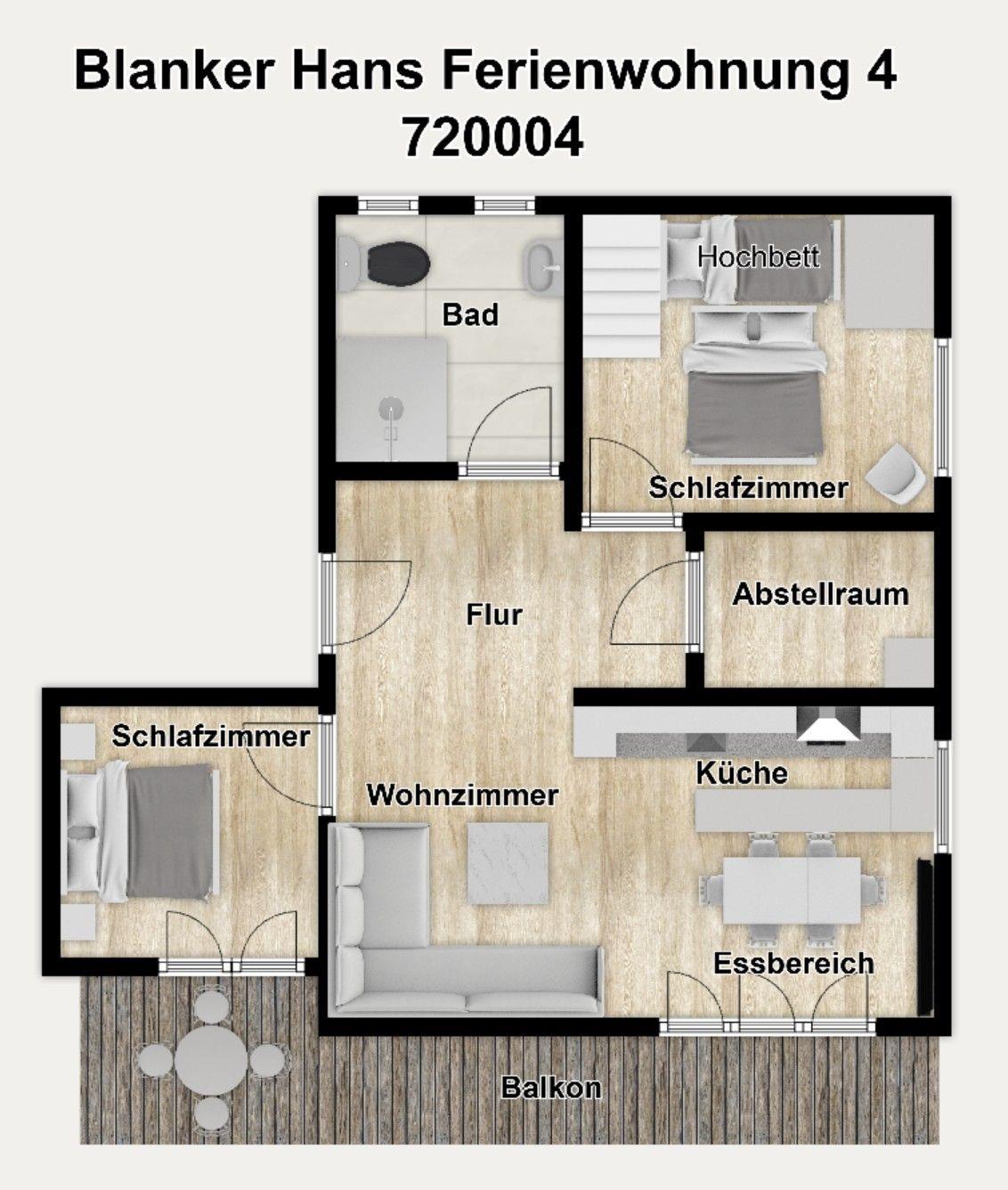 Genießen Sie einen exklusiven Nordsee-Urlaub nur wenige Minuten vom Strand entfernt! In unserer komfortablen "Ferienwohnung 4" im Haus "Blanker Hans" erwarten Sie herrlich entspannte Urlaubstage. Mit hochwertiger Ausstattung, zwei separaten Schlafzimmern, hellem Wohnraum, sonnigem Balkon und großer Terrasse bietet Sie Ihnen Platz für bis zu 5 Personen. Zu den weiteren Annehmlichkeiten gehören Fußbodenheizung, freies WLAN und 3 moderne TVs. Wir wünschen Ihnen auf Wangerooge gute Erholung!