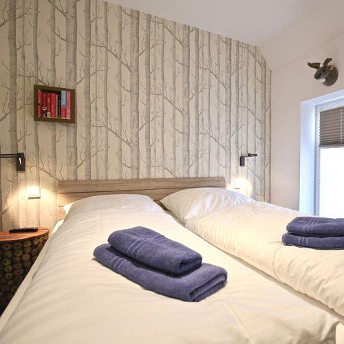 Die Ferienwohnung ist für bis zu vier Personen geeignet und verfügt über zwei separate Schlafzimmer. Für Familien mit kleinen Kindern stehen sowohl ein Babybett als auch ein Kinderhochstuhl auf Wunsch bereit. Im lichtdurchfluteten Wohnbereich lädt eine gemütliche Sofaecke zum Entspannen ein. Die offene, zum Wohnzimmer hin integrierte Küche ist umfassend ausgestattet und verfügt über einen Herd mit Elektrobackofen, Kühlschrank und sämtliches Kochzubehör, das Sie für die Zubereitung gemeinsamer Mahlzeiten benötigen. Am Esstisch im Essbereich finden alle Gäste bequem Platz, um den Tag bei einem ausgedehnten Frühstück oder einem gemütlichen Abendessen ausklingen zu lassen.
