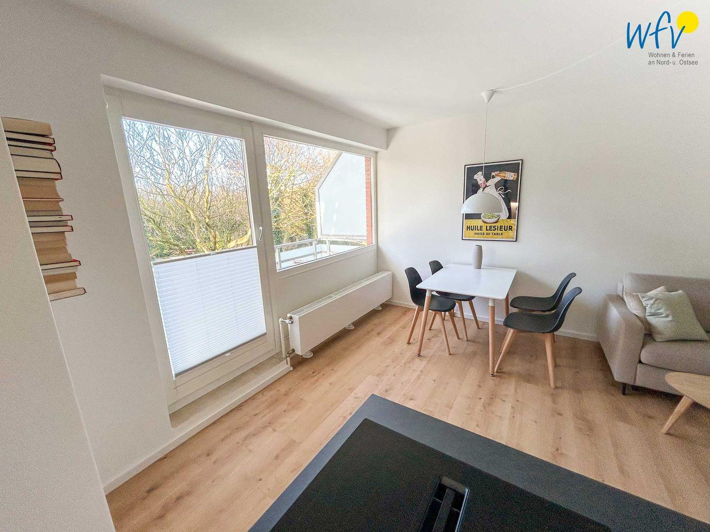 Bereits beim Ferienfrühstück starten Sie entspannt in den Urlaubstag. In Gedanken wird schon die Badetasche gepackt oder der Rucksack für den Strandspaziergang. Da das Appartement weniger als 300m vom Strand entfernt liegt, können sie in nur 3 Gehminuten am weitläufigen, wunderschönen Strand der Insel entspannen. Nach dem Strandtag genießen Sie wohltuende Nordseeluft auf dem Balkon mit Westausrichtung und schönem Blick auf den Teichgarten - hier können Sie Ihren Urlaubstag wunderbar ausklingen lassen.