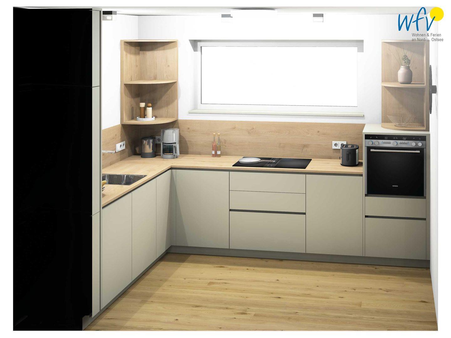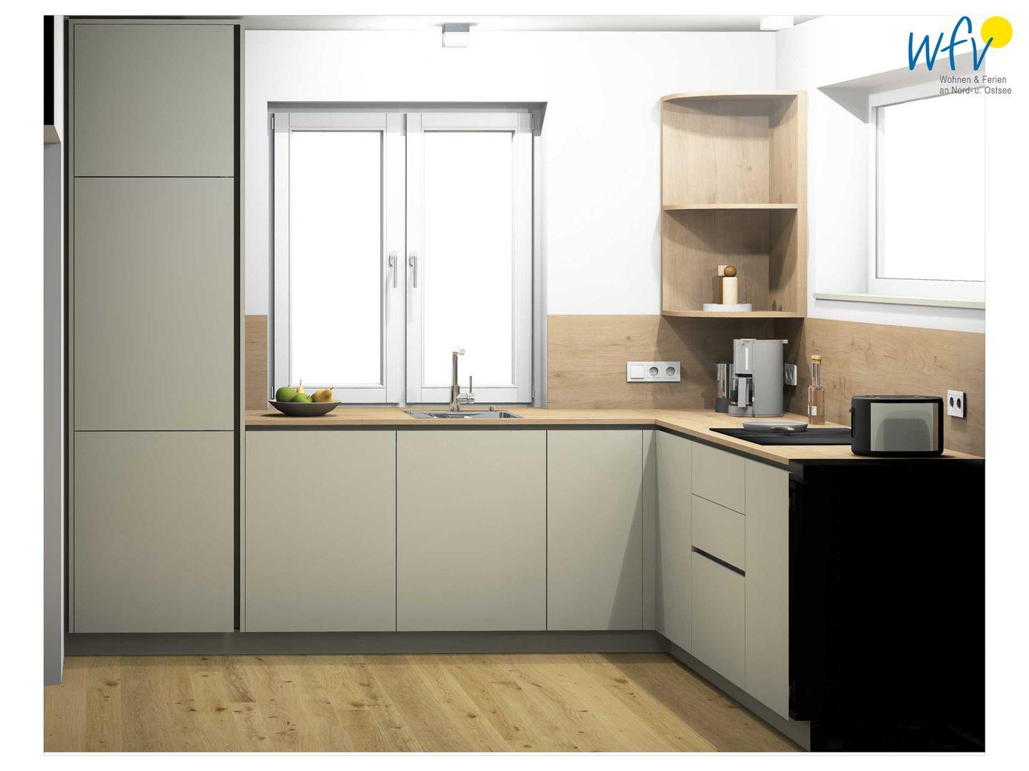 Die Küche der Ferienwohnung "Dünenfriese" ist bestens ausgestattet und lässt auch im Urlaub die Kochfreunde zu wahren Gourmets werden. Sie verfügt u.a. über einen großen Kühlschrank und Markengeräte. Ihren ersten Morgenkaffee können Sie in Ruhe am Küchentresen mit schönem Blick in die Umgebung genießen. Dazu wählen Sie zwischen einer Nespresso- oder einer Filter-Kaffeemaschine. Für Teeliebhaber steht für den langen Genuss ein Stövchen bereit.
